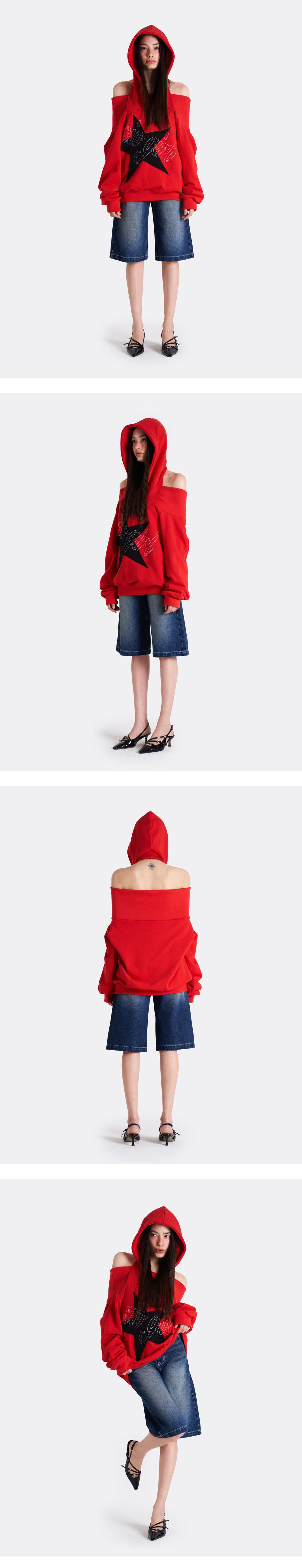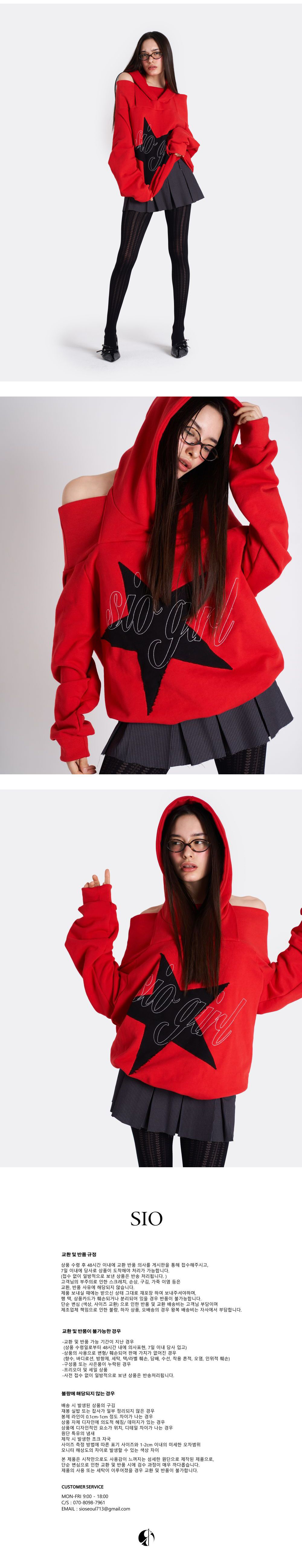 프론트에 니들 포인트를 준 오프숄더 디자인의 오버사이즈 후디. 대비되는 컬러 배색과 SIO GIRL 자수 디테일로 키치한 무드를 보여주는 디자인입니다. 홀터넥 후드로 착용 시 승모를 가려주어 어깨의 라인을 더 잘 보여줄 수 있습니다. 두껍지 않은 소재로 간절기에 착용하기 좋은 제품입니다. MODEL SIZE HEIGHT 168cm BUST 84cm WAIST 64cm HIPS 87cm