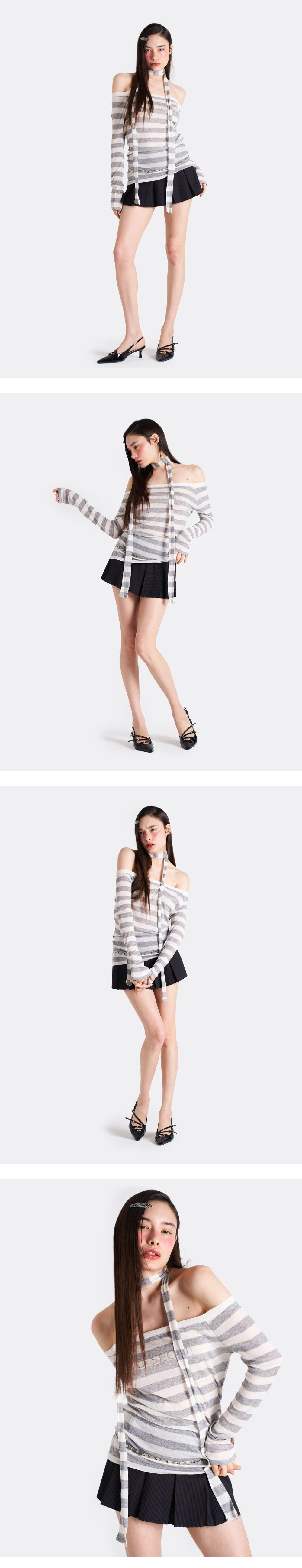 얇고 부드러운 소재의 핫픽스 디테일의 스트라이프 롱 슬리브 탑. 오프숄더로 또는 하프숄더로 착용할 수 있게 디자인 된 롱 슬리브 탑입니다. 소프트한 텍스쳐의 소재로 착용 시 핏하지는 않으나 여리여리한 느낌을 주는 제품입니다. 어깨라인에 흘러내림을 최소화하고 고정시켜주는 실리콘 테이핑 마감을 하였습니다. 가슴에 핫픽스 디테일을 주어 기본 스트라이프 티와는 다른 느낌을 준 디자인입니다. MODEL SIZE HEIGHT 168cm BUST 84cm WAIST 64cm HIPS 87cm