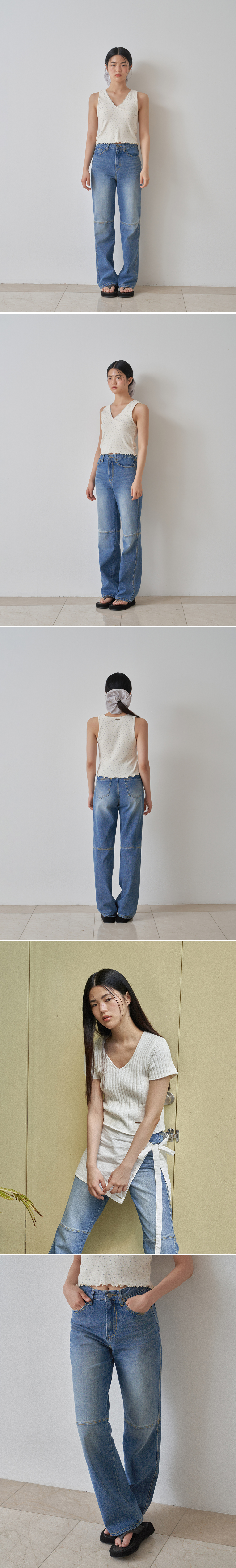워싱들이 멋스러워 빈티지함 가득 입어질 여유있는 핏의 부츠컷 팬츠입니다. 보다 가벼운 소재감으로 한겨울을 제외한 모든 시즌에 함께하시기 좋으며, YKK 지퍼를 사용해 완성 했습니다. 미디움톤의 컬러에 캣/샌드 워싱으로 포인트를 주어 쿨함이 느껴지며 무릎 아래로 더해준 절개+스티치 포인트로 멋스러움 가득 입어질 팬츠입니다. 피트 되지 않는 여유있는 부츠컷 디자인으로 다리라인이 더욱 길어보입니다. 곳곳의 과하지 않은 워싱감과 디테일로 보다 완성도 높은 아웃핏이 연출됩니다.