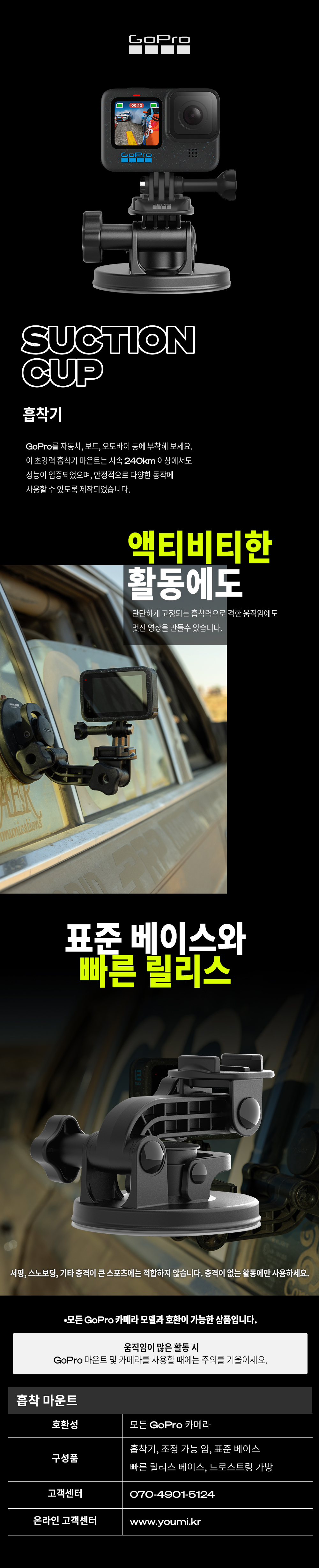 고프로 히어로 흡착 마운트 블랙