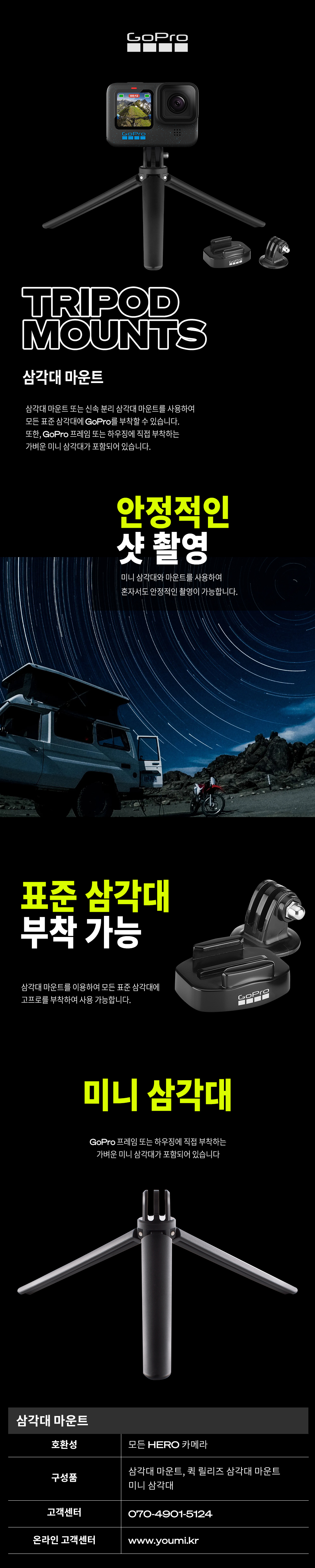 고프로 히어로 삼각대 마운트 블랙
