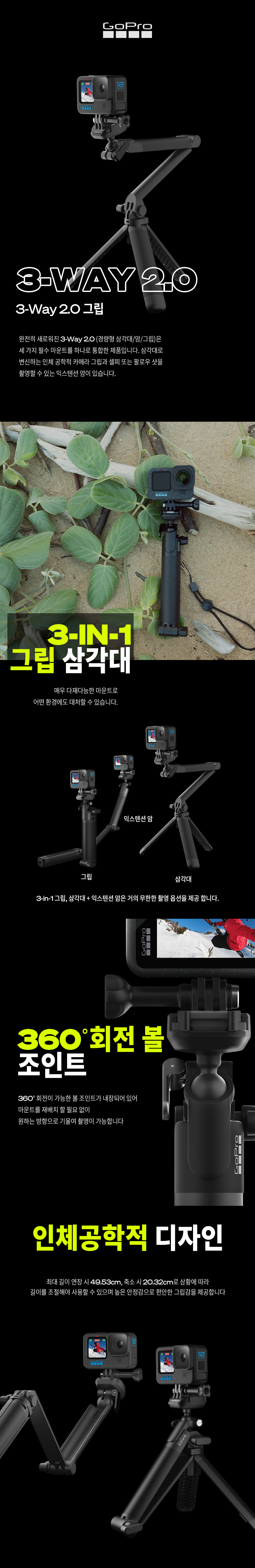 고프로 히어로 3 웨이 2.0 그립 익스텐션 암 삼각대 블랙
