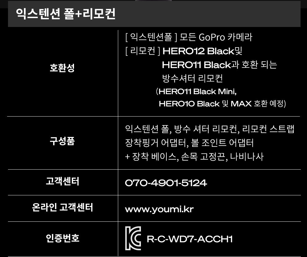 고프로 익스텐션 폴 방수 셔터 리모컨