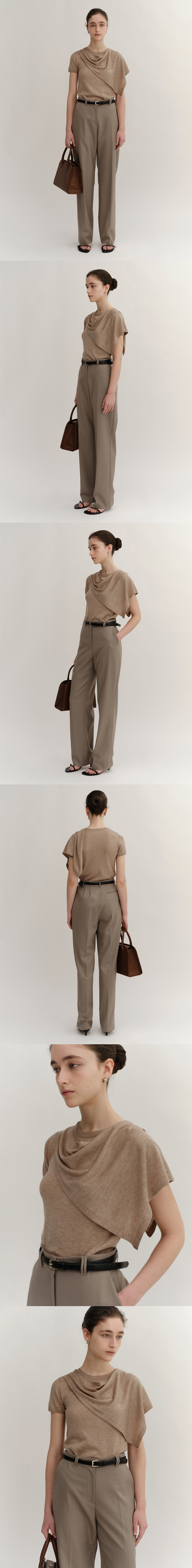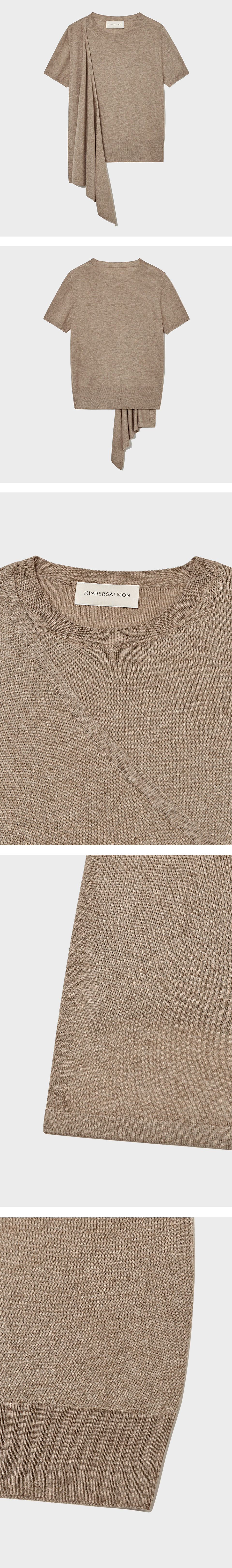 드레이프드 스카프 디테일의 하프 니트. 비대칭의 드레이프 패널. 실크 블렌디드 울원사로 라이트한 중량감.
