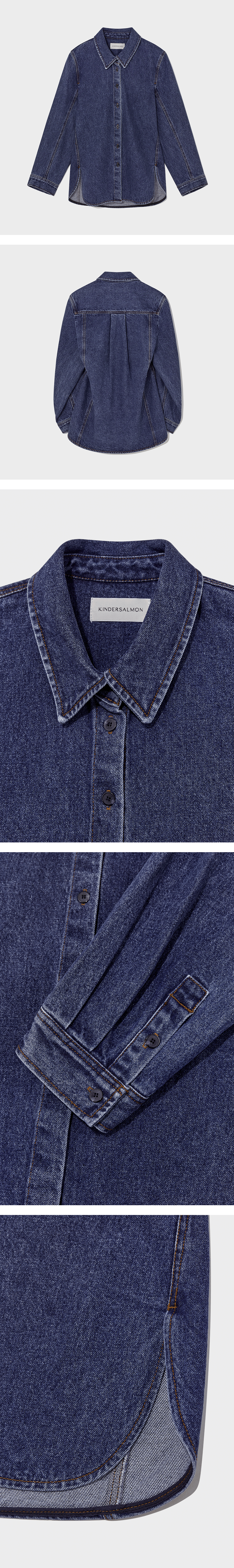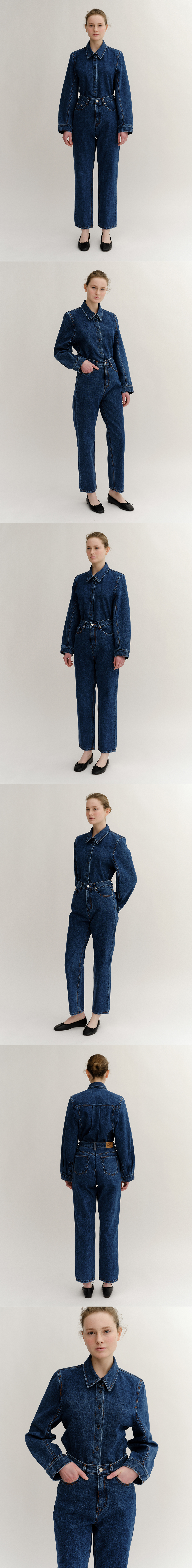 블루 워시드 Ceres 셔츠 자켓. 7수 우능 무지 고밀도 원단, 스톤 데미지, 추가 고착 작업. 슬림핏, 신축성 없음. SS24 Ceres Washed Jeans Blue와 함께 룩을 연출할 수 있는 아이템.