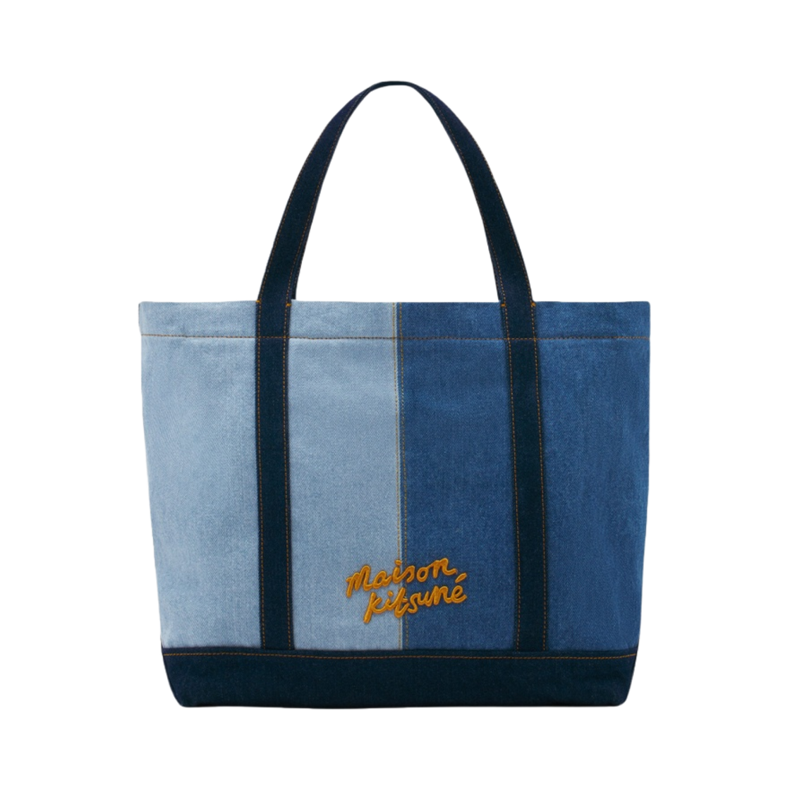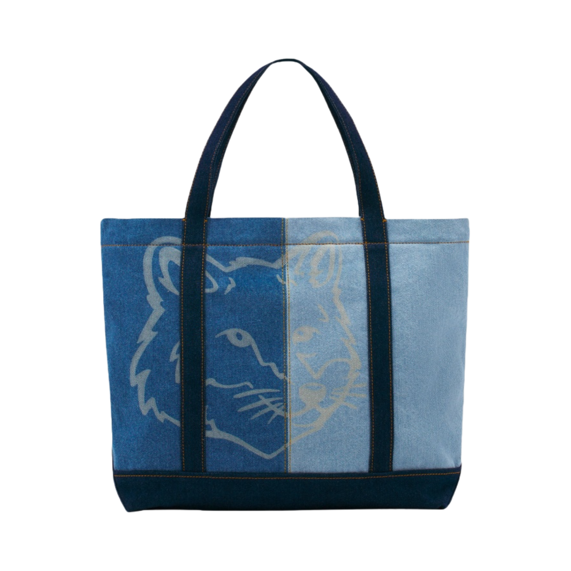 Maison Kitsune Fox Head Medium Denim Tote Bag Washed Indigo