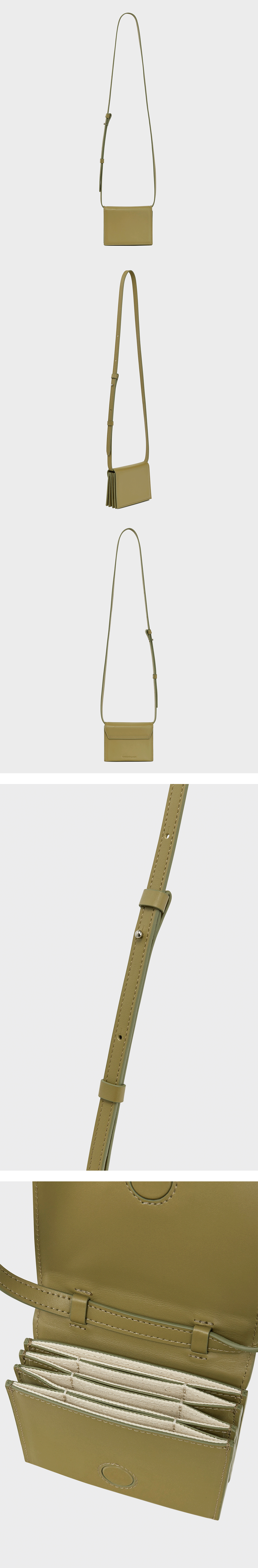 은은한 결이 느껴지는 이태리 (Tannery FAEDA) 소가죽 소재. 아코디언 형태의 미니 사이즈 크로스백. 플랫한 4개의 내부 공간. 길이 조절이 가능한 크로스백 스트랩.