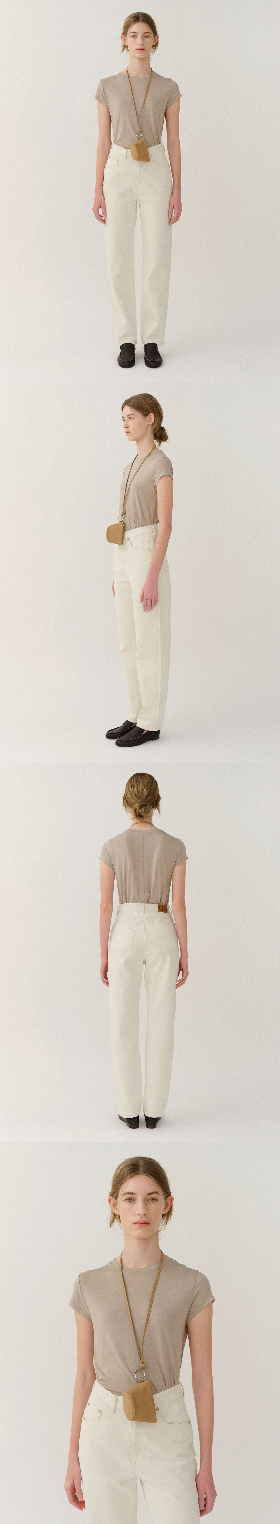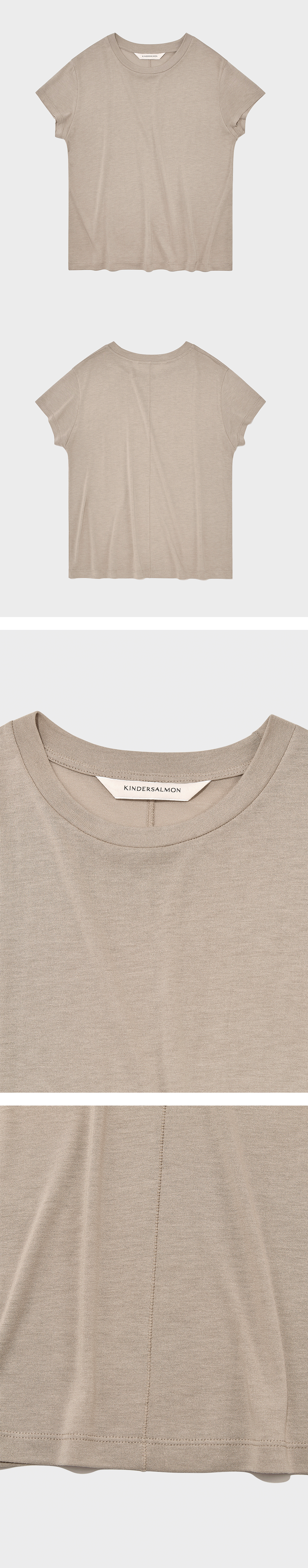 실크 혼방 피티드 코튼 티셔츠. 자연스럽게 몸을 타고 흐르는 핏, 크롭 기장감, 후면 중심에 견고한 스티치 디테일.