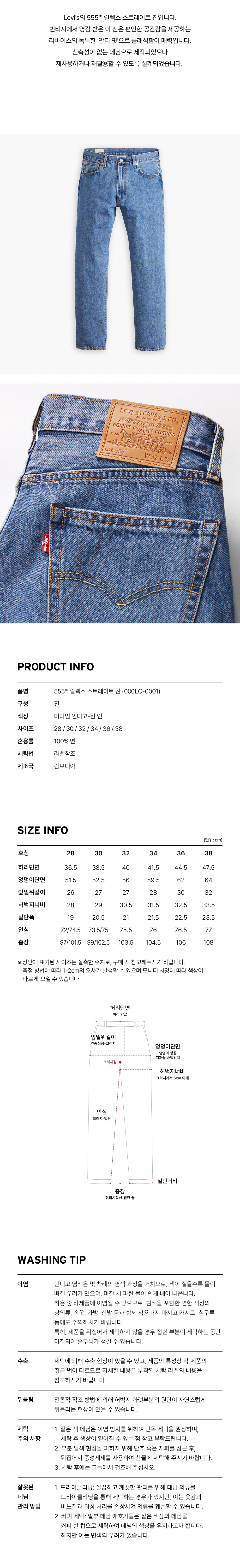 Levi's의 555™ 릴렉스 스트레이트 진입니다. 빈티지에서 영감 받은 이 진은 편안한 공간감을 제공하는 리바이스의 독특한 '안티 핏'으로 클래식함이 매력입니다. 신축성이 없는 데님으로 제작되었습니다.