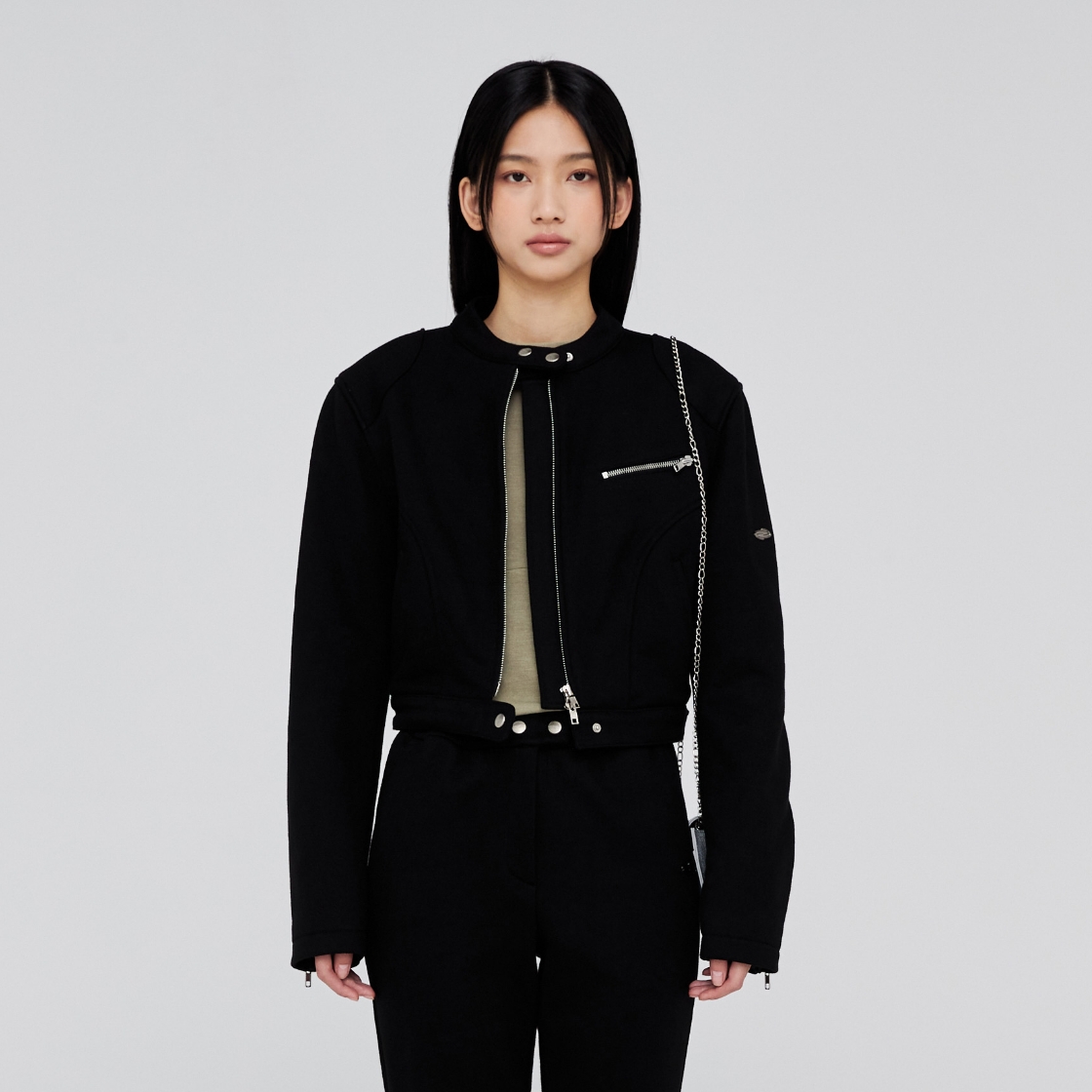 오프닝프로젝트 W 바이커 저지 자켓 블랙