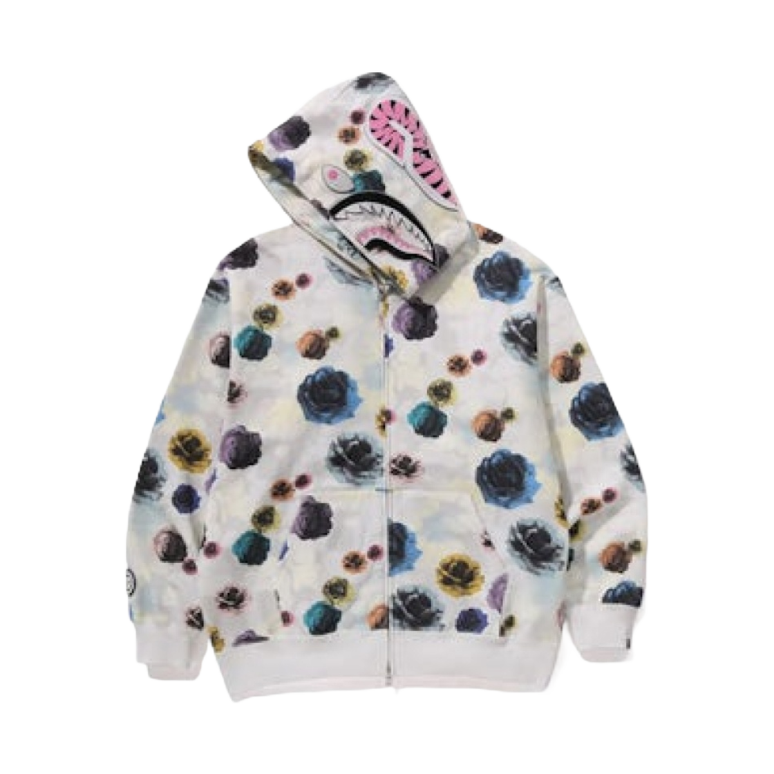 베이프 플로랄 카모 샤크 릴렉스드 핏 풀 집 후드 아이보리