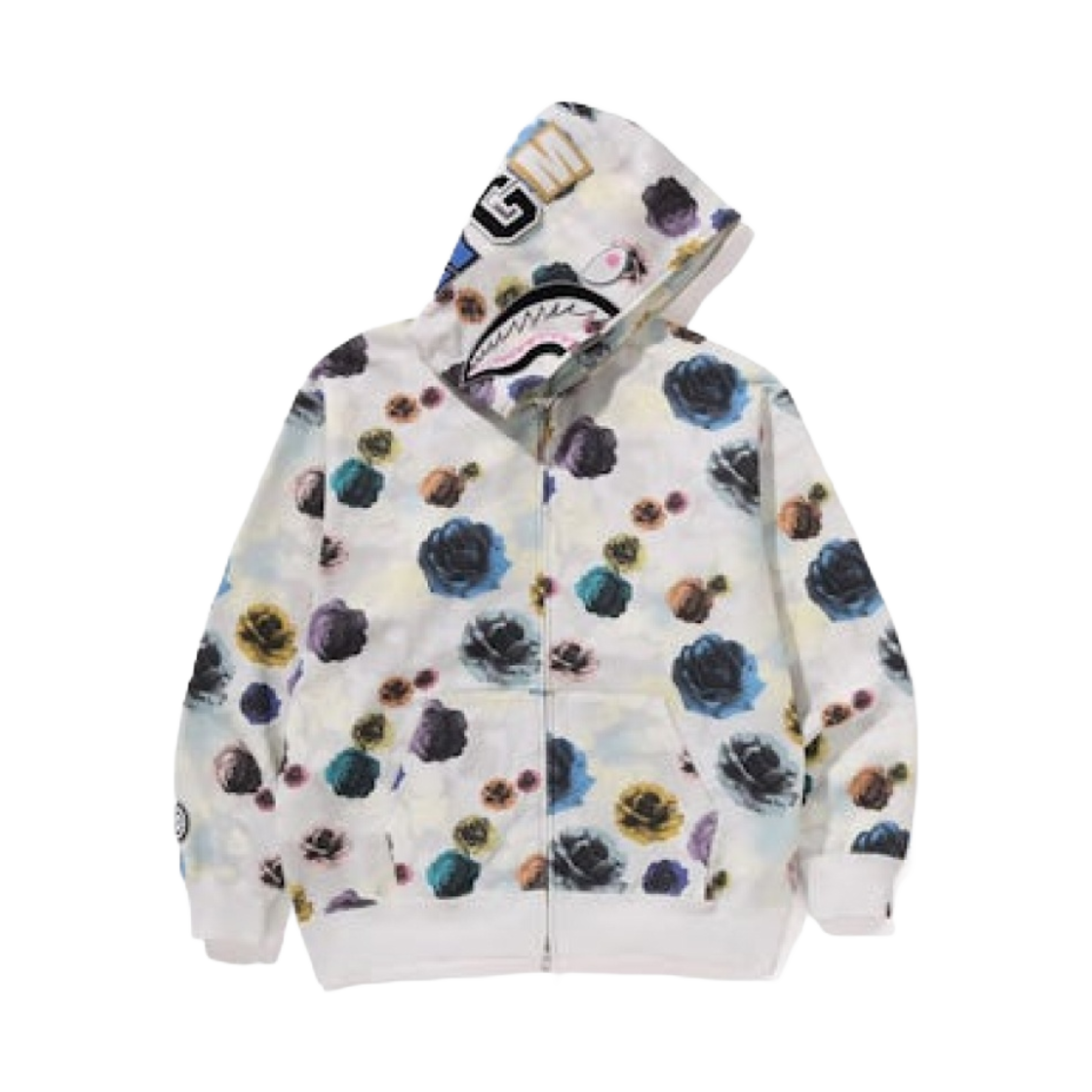 BAPE Floral Camo Shark Relaxed Fit Full Zip Hoodie Ivory