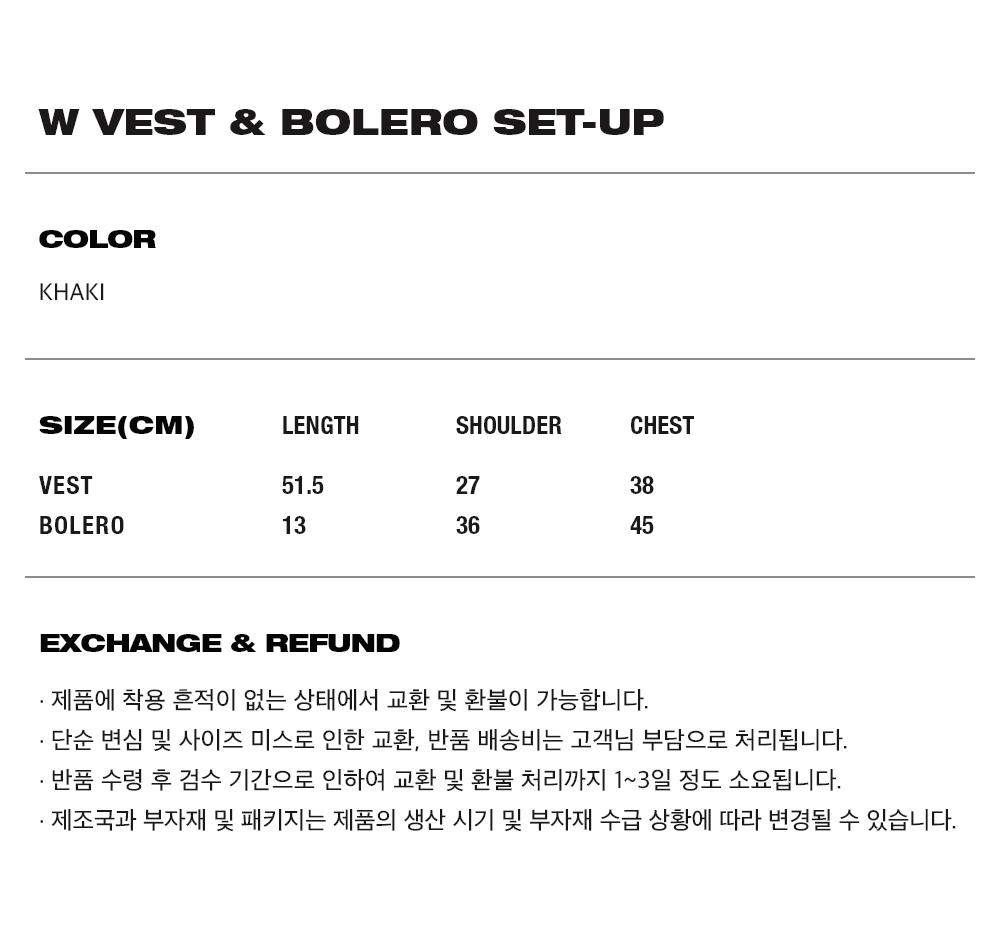 오프닝프로젝트 W 베스트 & 볼레로 셋업 카키