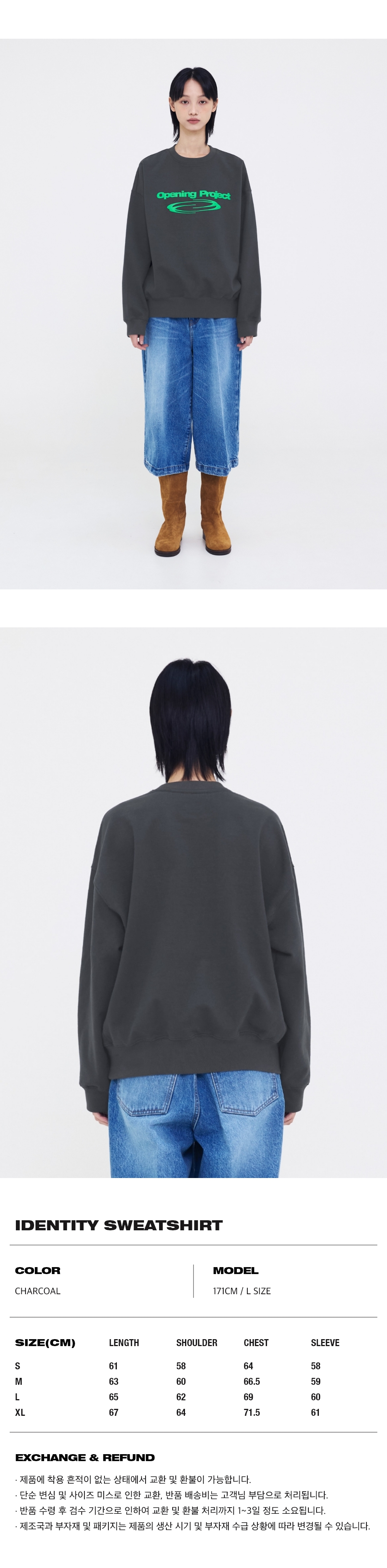 오프닝프로젝트 아이덴티티 스웨트셔츠 차콜