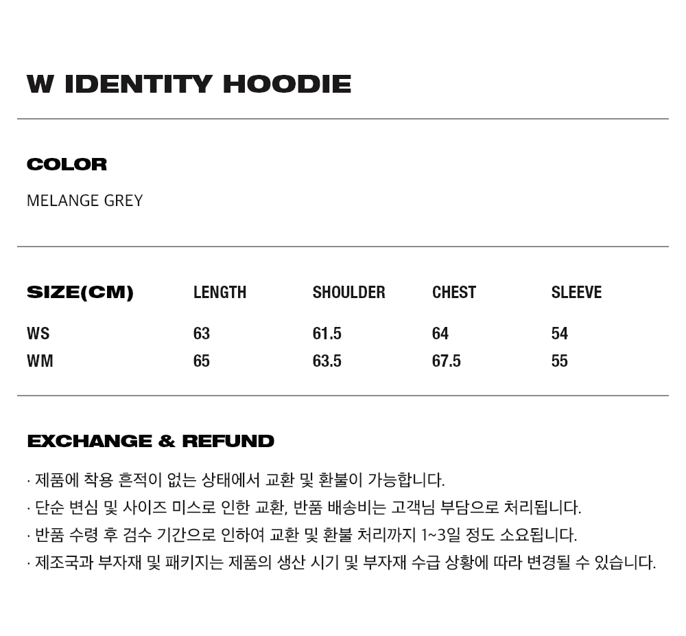 오프닝프로젝트 W 아이덴티티 후디 멜란지 그레이
