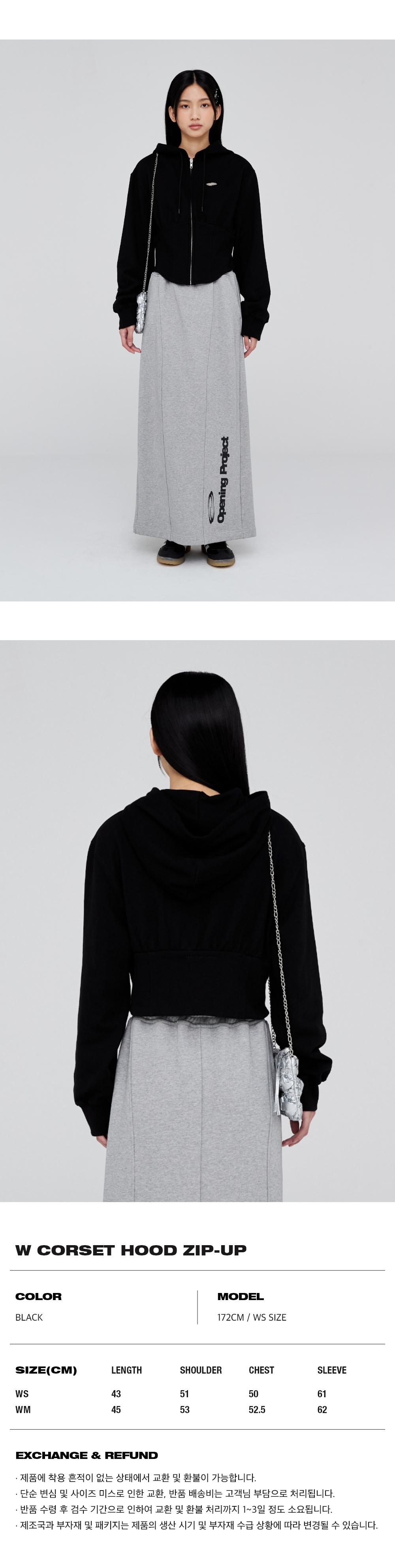 오프닝프로젝트 W 코르셋 후드 집업 블랙