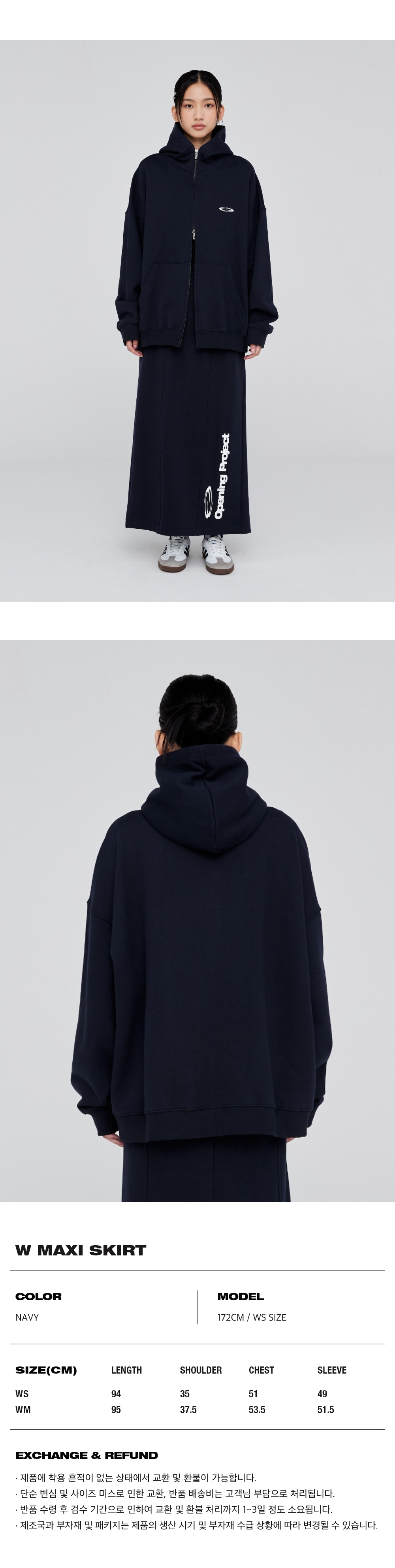 오프닝프로젝트 W 맥시 스커트 네이비