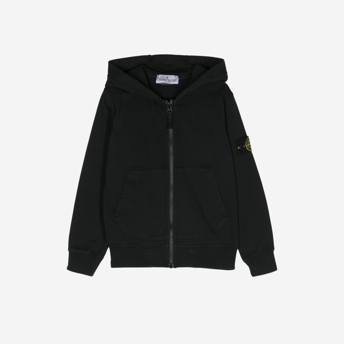 (키즈) 스톤 아일랜드 로고 후드 풀 집업 스웨트셔츠 블랙 - 24SS