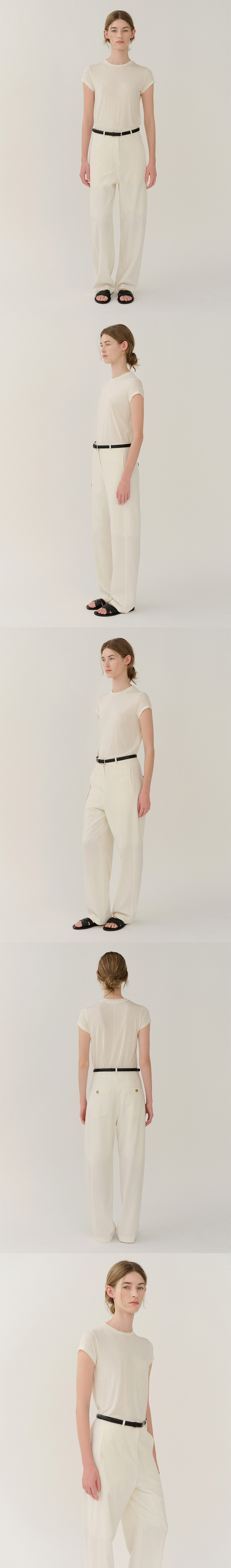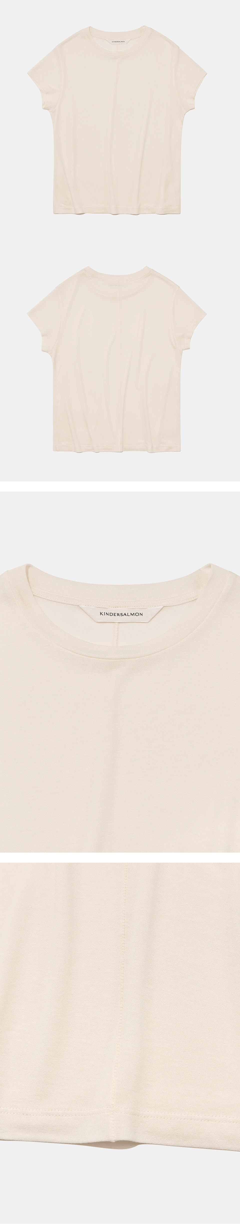 실크 혼방 피티드 코튼 티셔츠. 자연스럽게 몸을 타고 흐르는 핏, 크롭 기장감, 후면 중심에 견고한 스티치 디테일.