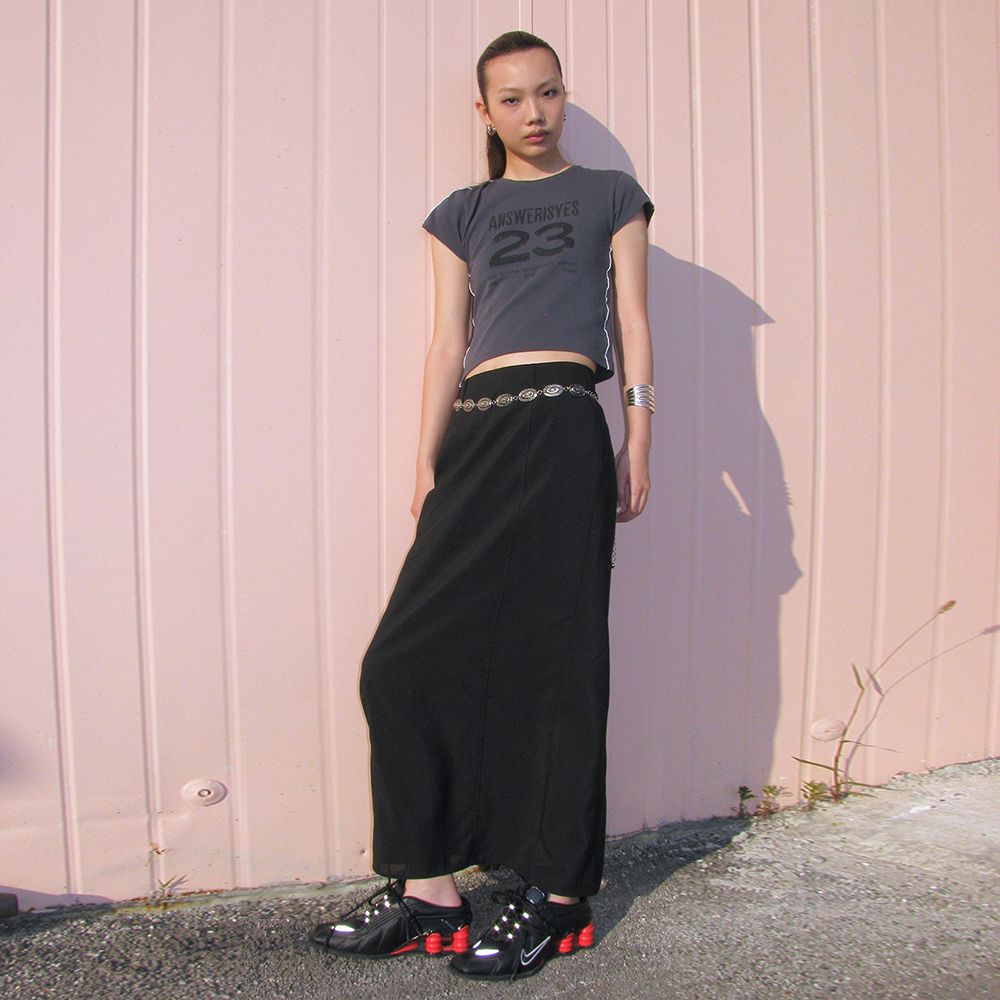 엔써이즈예스 핫 슬릿 맥시 스커트 블랙