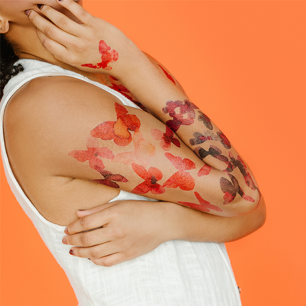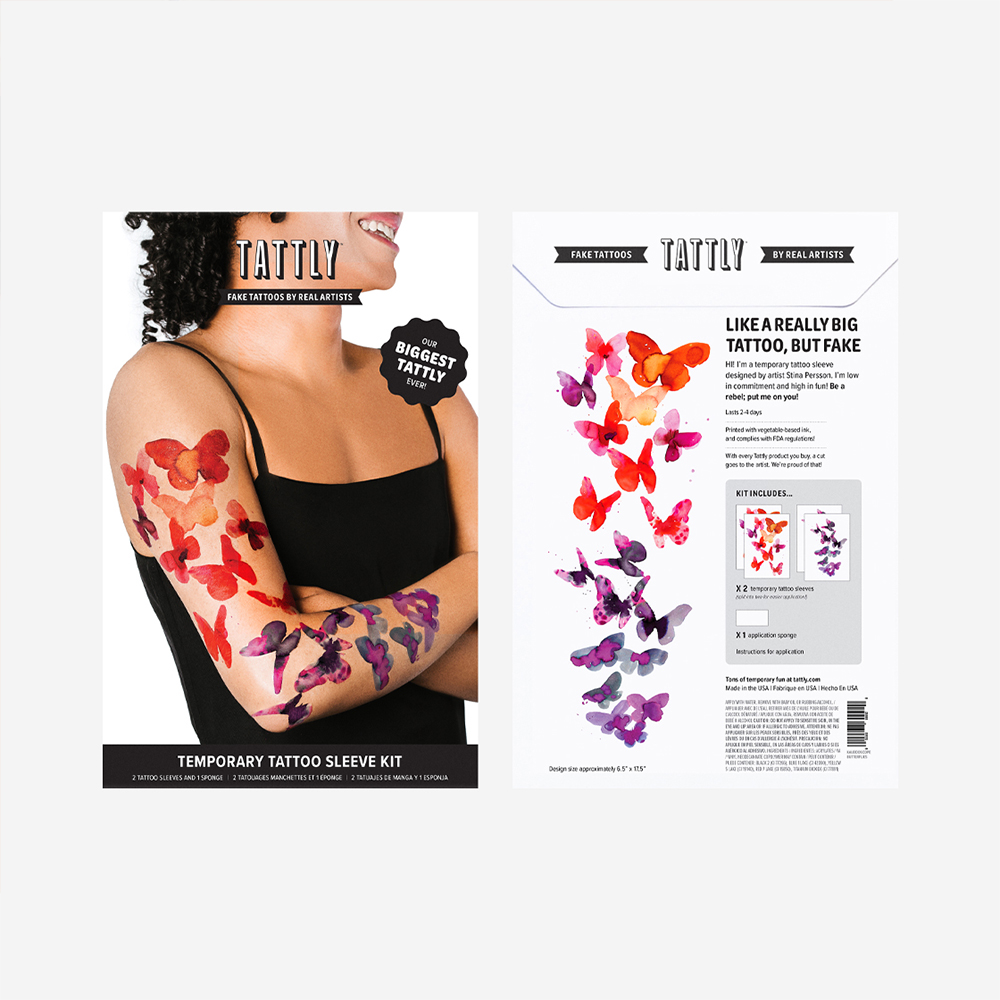 • Kaleidoscope Butterflies 슬리브 키트 : W 165 x H 432 mm (각 슬리브 풀로 적용 시) • 타투스티커 슬리브 키트 : 같은 디자인 2장으로 구성, 재사용이 가능한 매직 스펀지 1개