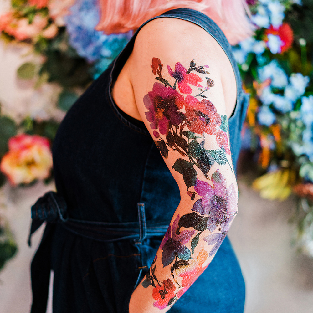 • Painted Floral 슬리브 키트 : W 165 x H 432 mm (각 슬리브 풀로 적용 시) • 타투스티커 슬리브 키트 : 같은 디자인 2장으로 구성, 재사용이 가능한 매직 스펀지 1개