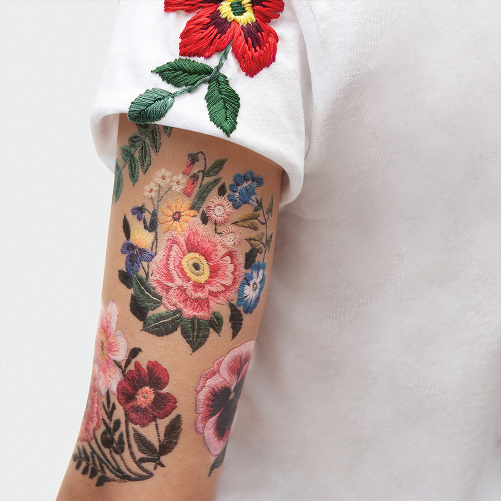 • The Embroidery 세트 : W 108 x H 158 (mm) • Floraflies 시트 : W 110 x H 160 (mm) • 타투스티커 세트 : 4가지 디자인 2장으로 구성, 재사용이 가능한 매직 스펀지 1개 • 타투스티커 시트 : 같은 디자인 2장으로 구성