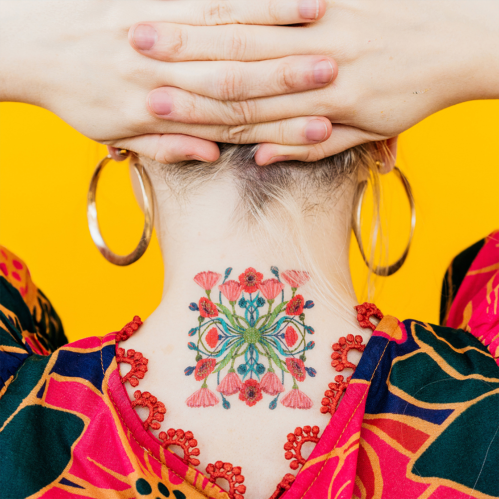 • Midnight Butterfly 페어 : W 51 x H 38 (mm) • Ornate Floral Square 페어 : W 76 x H 76 (mm) • Golden Oriole 페어 : W 76 x H 101 (mm) • 타투스티커 페어 : 같은 디자인 2장으로 구성