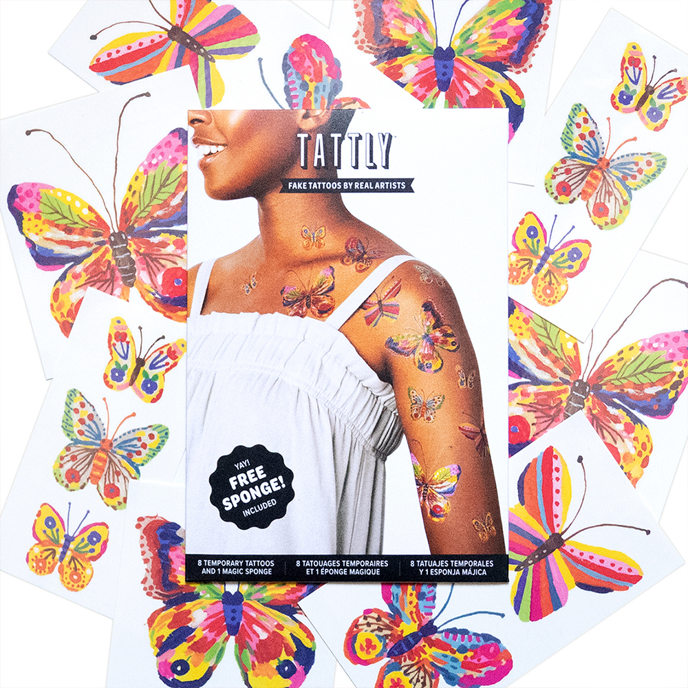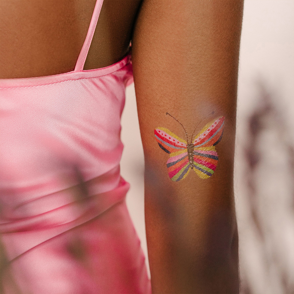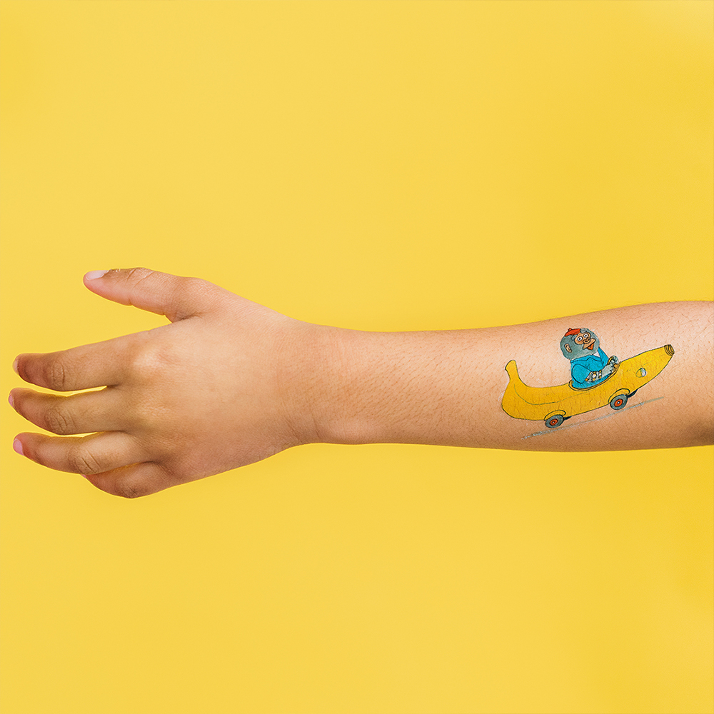 • Fluttering Colors 세트 : W 108 x H 158 (mm) • Bananas Gorilla Car RS 페어 : W 76 x H 50 (mm) • 3D Flower 페어 : W 76 x H 76 (mm) • 타투스티커 세트 : 8가지 디자인으로 구성, 재사용이 가능한 매직 스펀지 1개 • 타투스티커 페어 : 같은 디자인 2장으로 구성