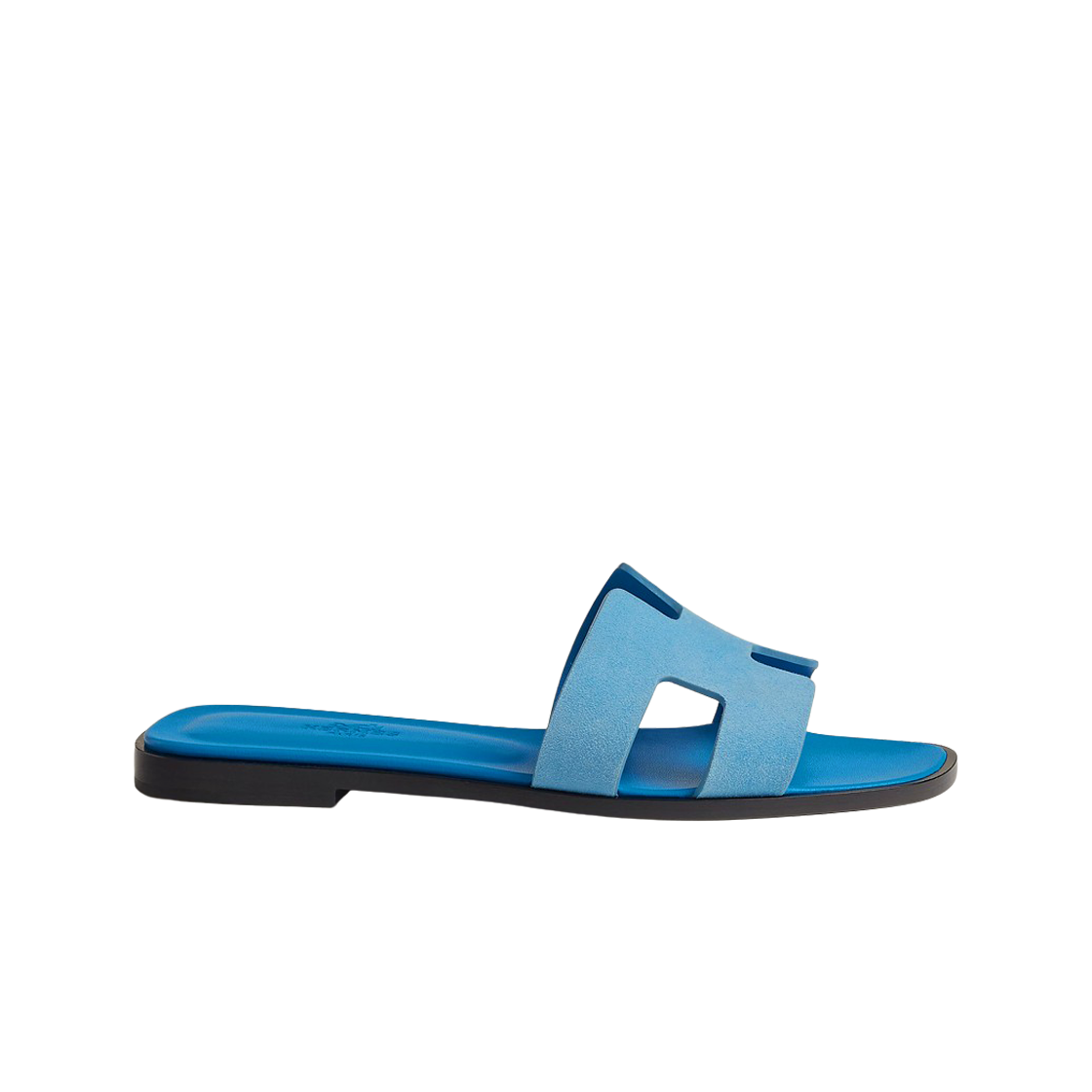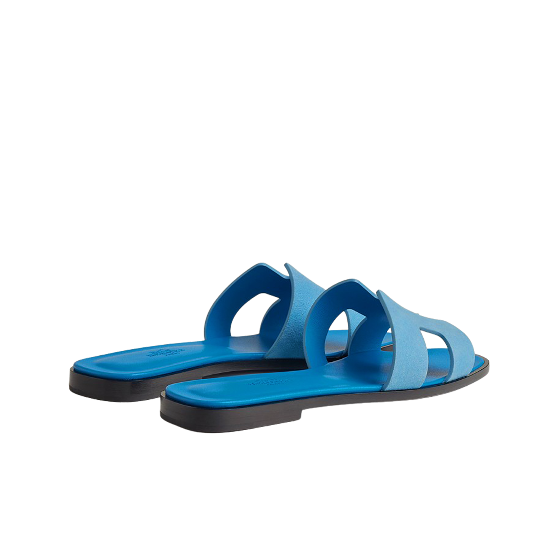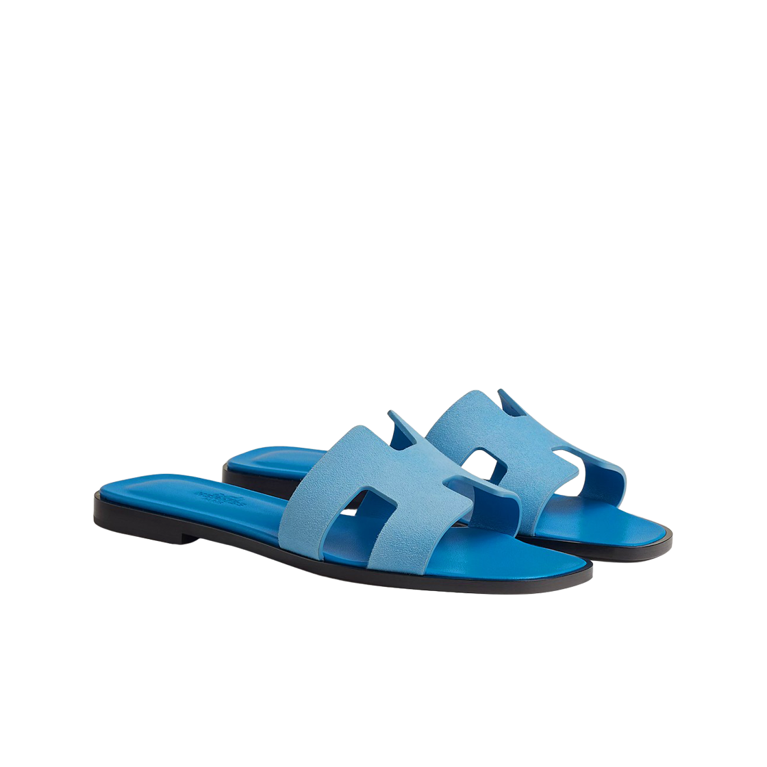 (W) Hermes Oran Sandal Suede Goatskin & Bleu Cameo