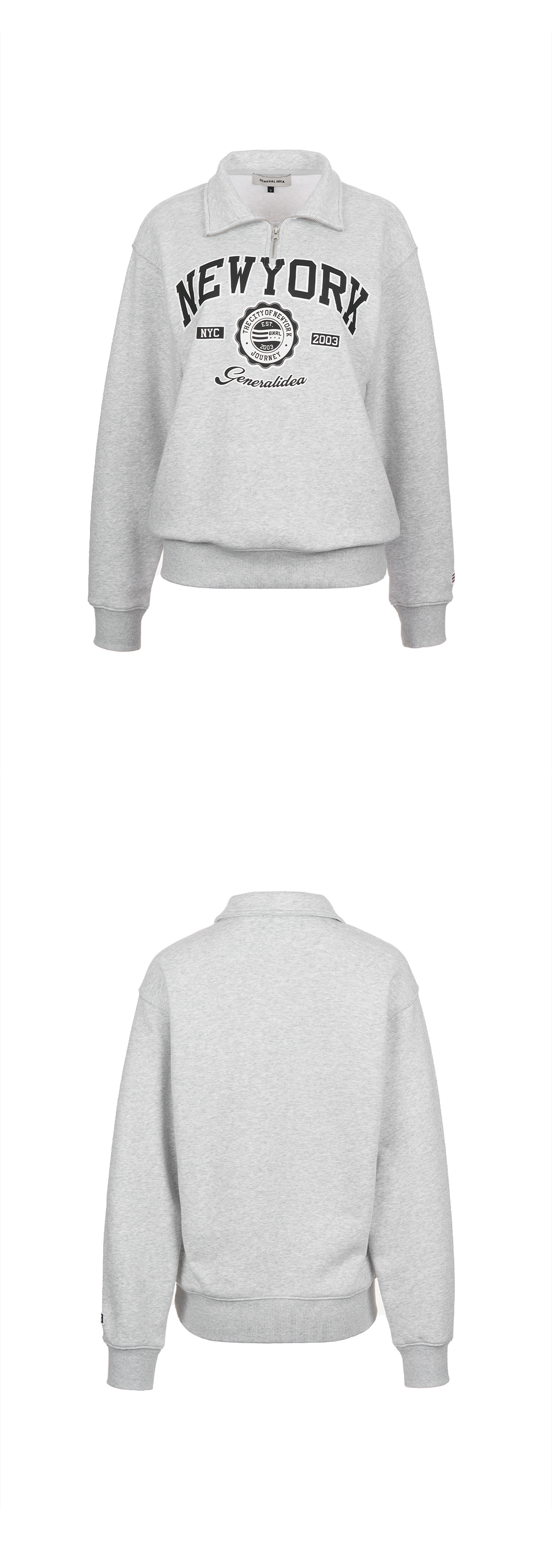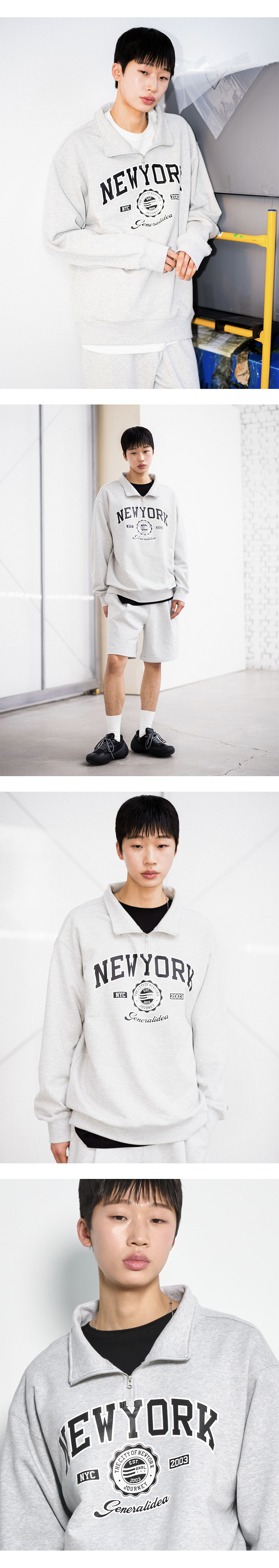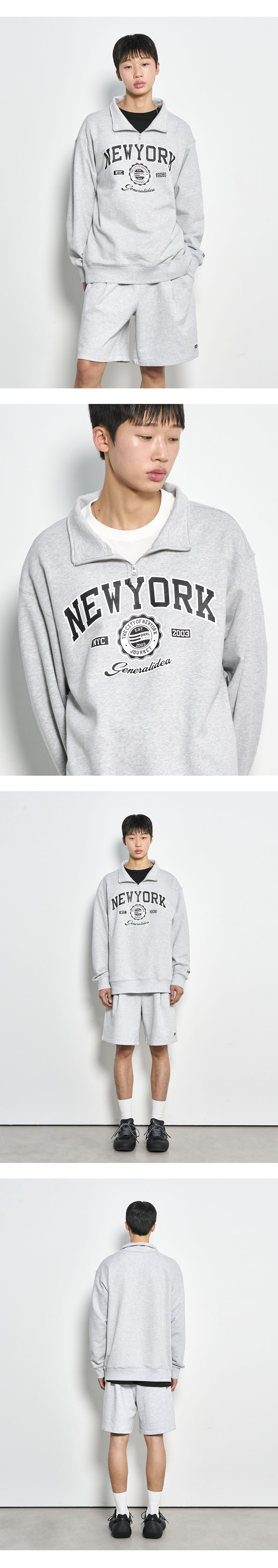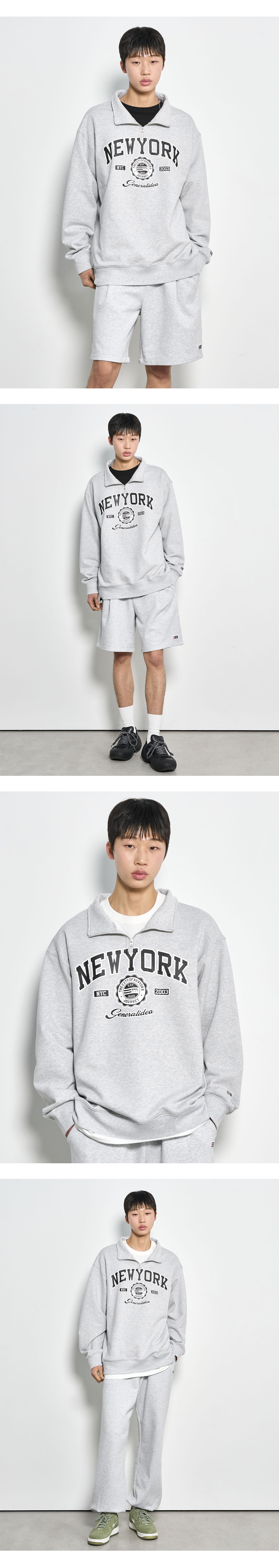 제너럴아이디어 유니섹스 뉴욕 코지 하프 집업 맨투맨 멜란지 그레이