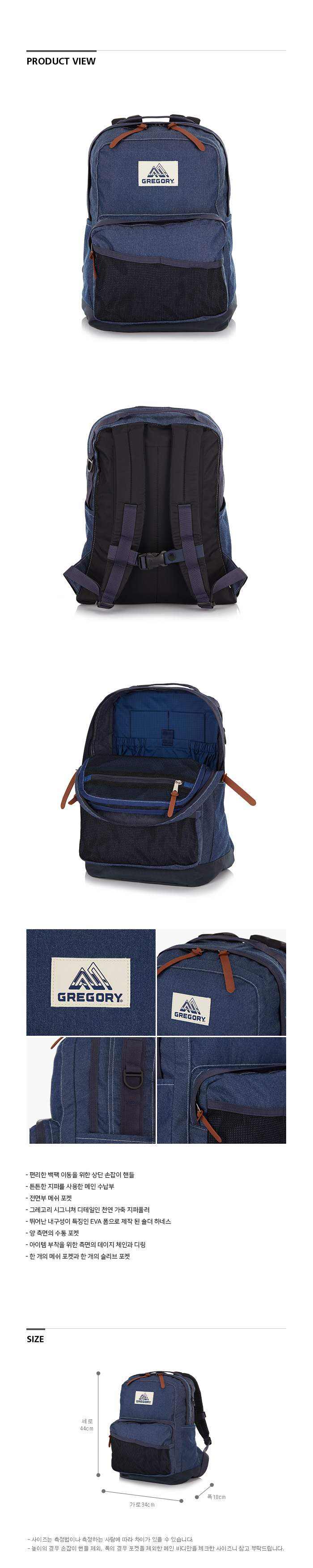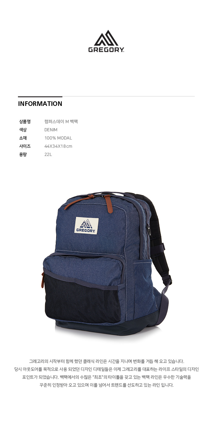 그레고리 캠퍼스데이 M 백팩 데님