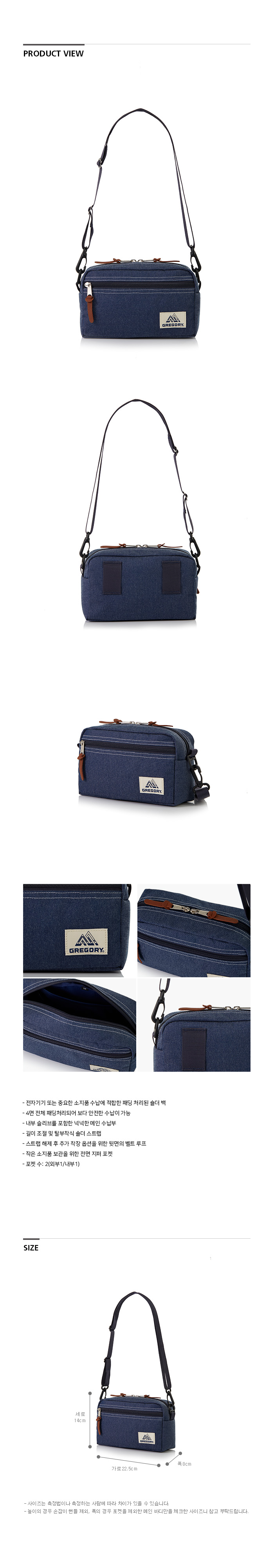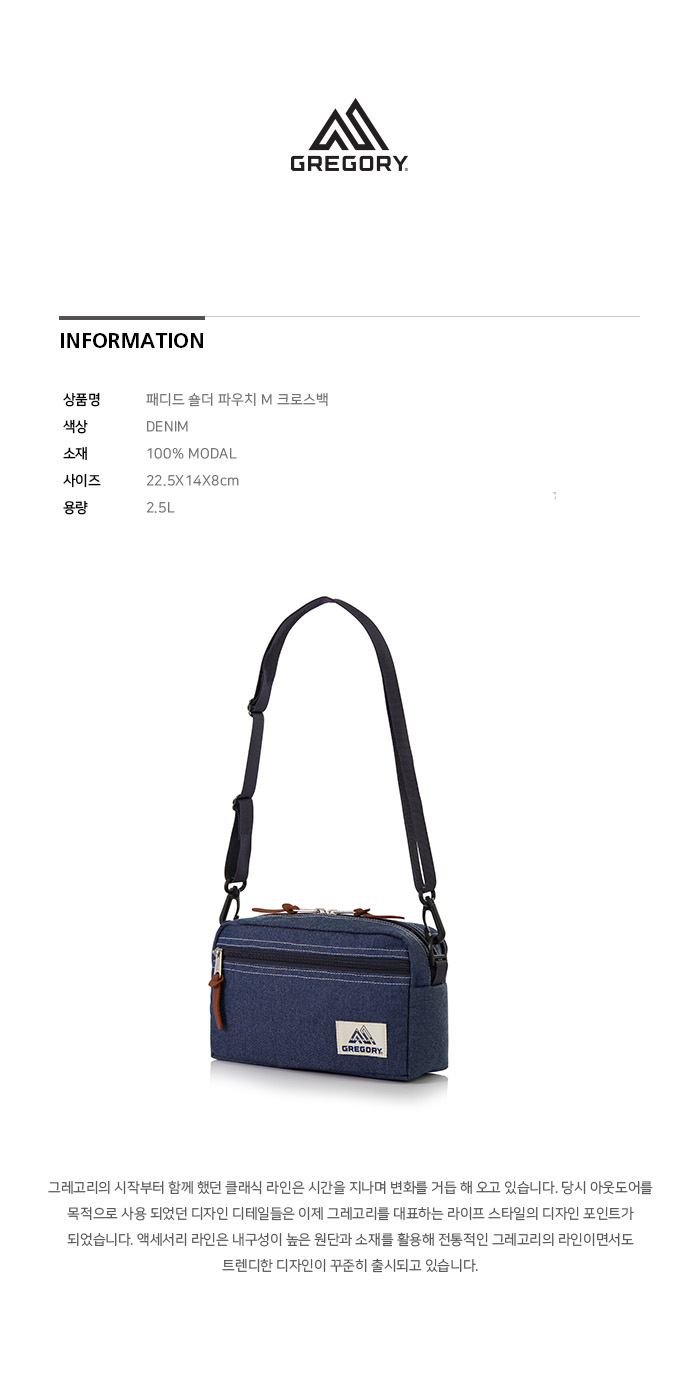 그레고리 패디드 숄더 파우치 M 데님