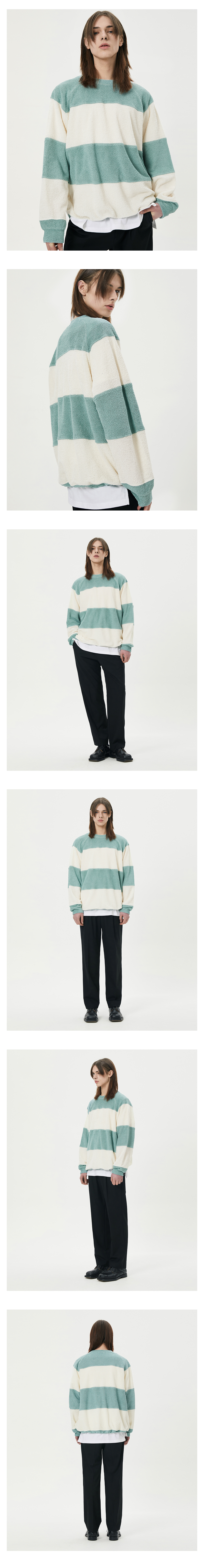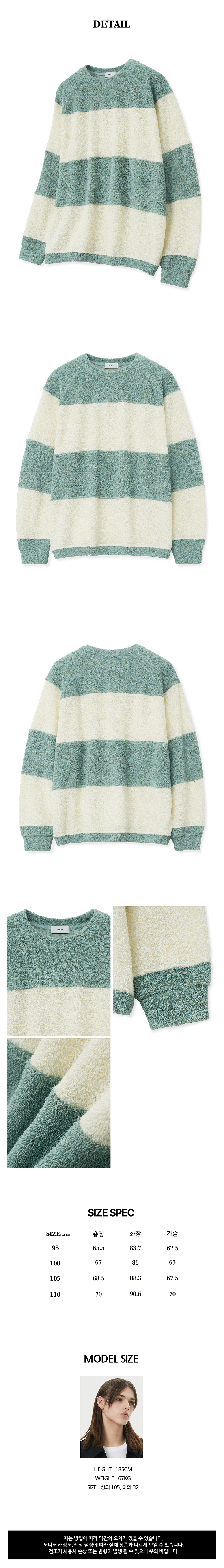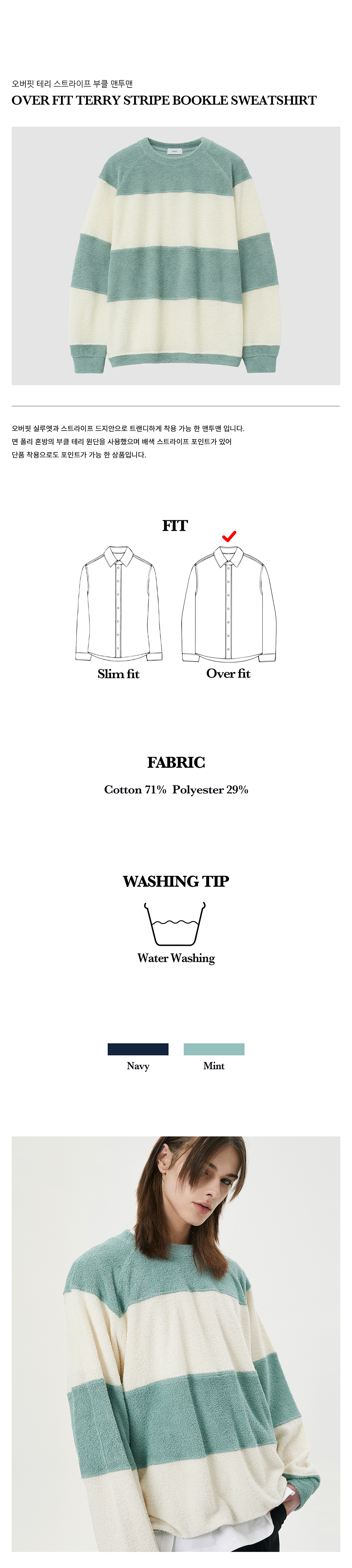 티엔지티 오버핏 테리 스트라이프 부클 맨투맨 민트