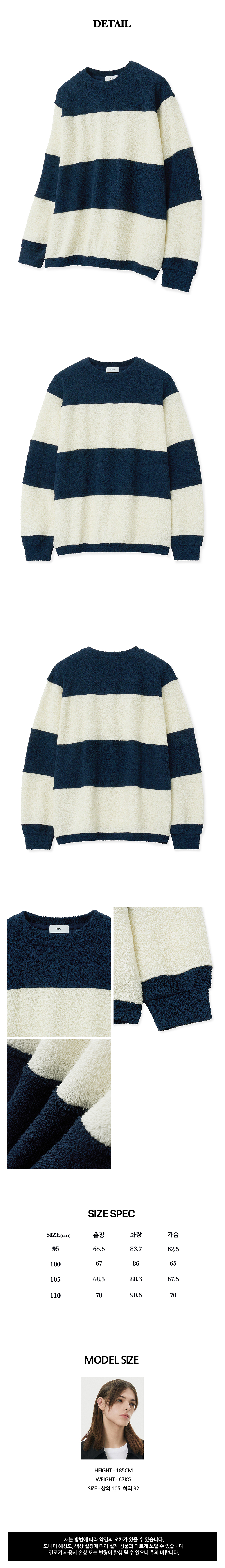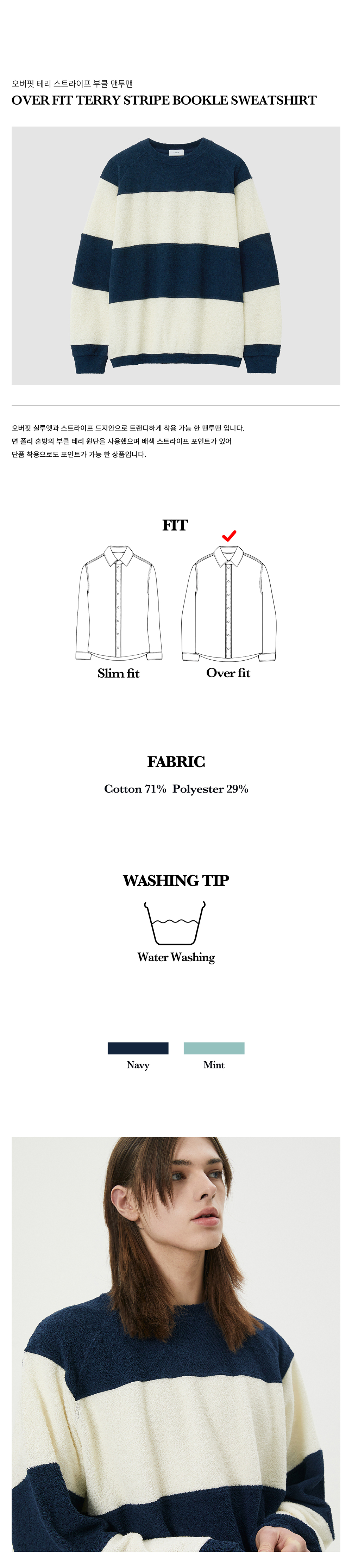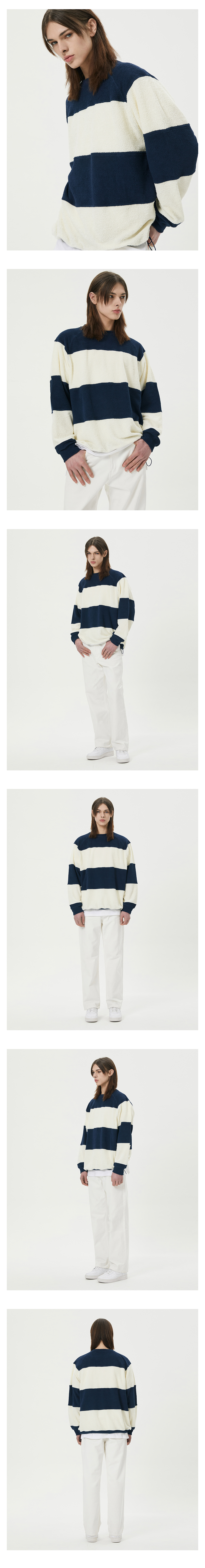 티엔지티 오버핏 테리 스트라이프 부클 맨투맨 네이비
