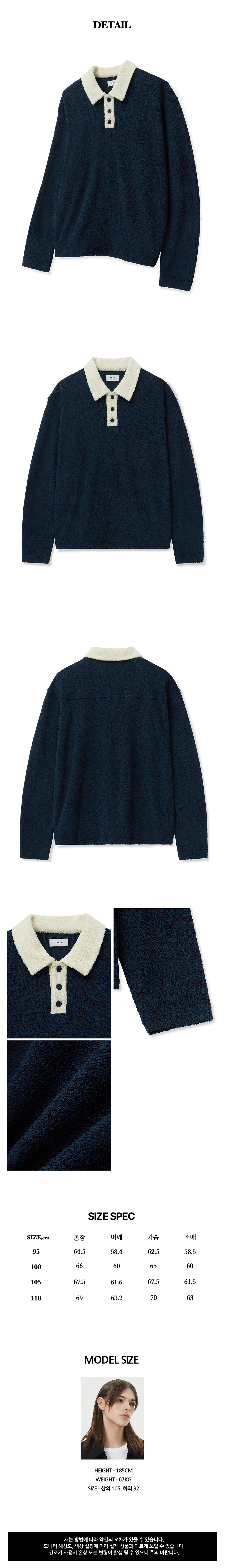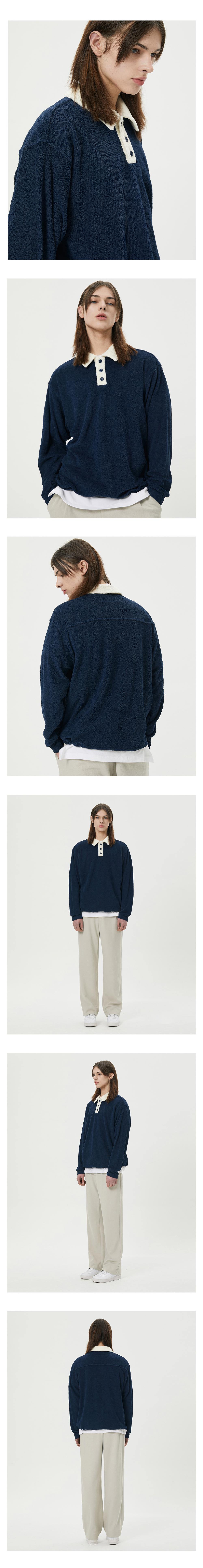 티엔지티 세미오버핏 테리 티에리 부클 럭비티 네이비
