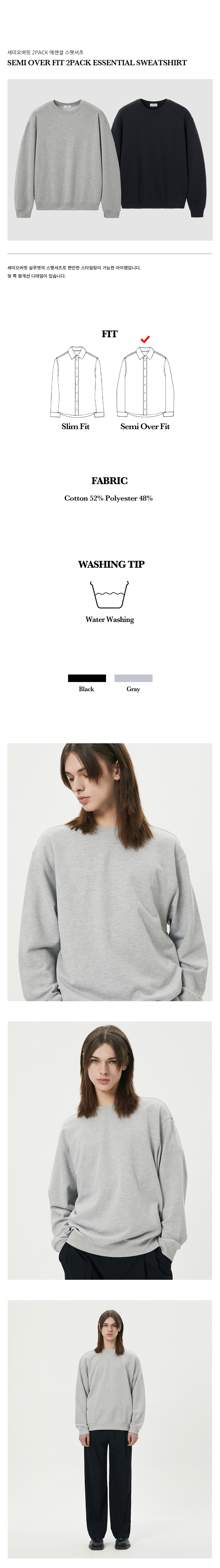 티엔지티 세미오버핏 2pack 에센셜 맨투맨