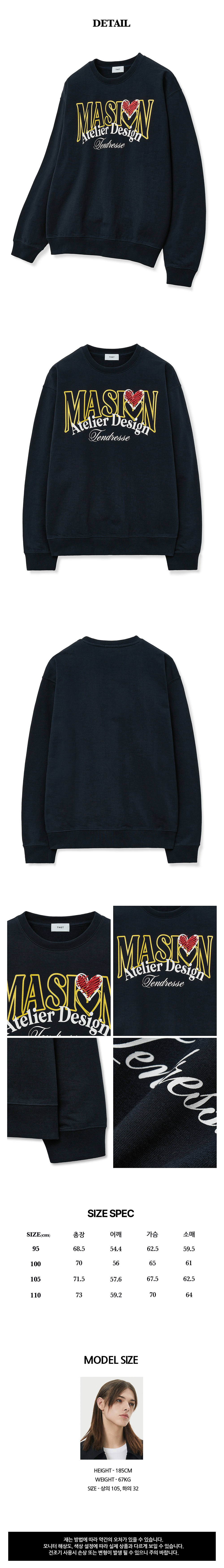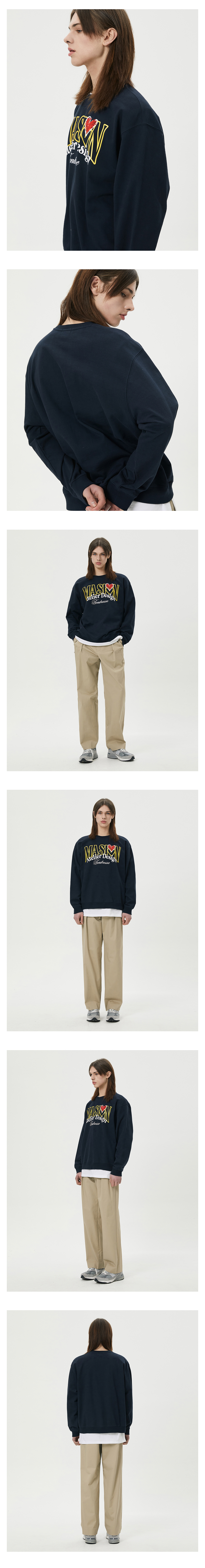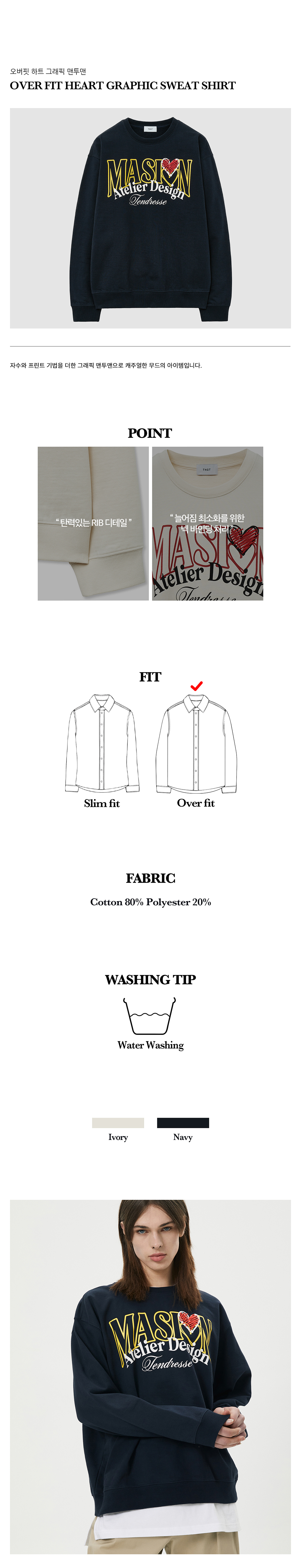 티엔지티 오버핏 하트 그래픽 맨투맨 네이비