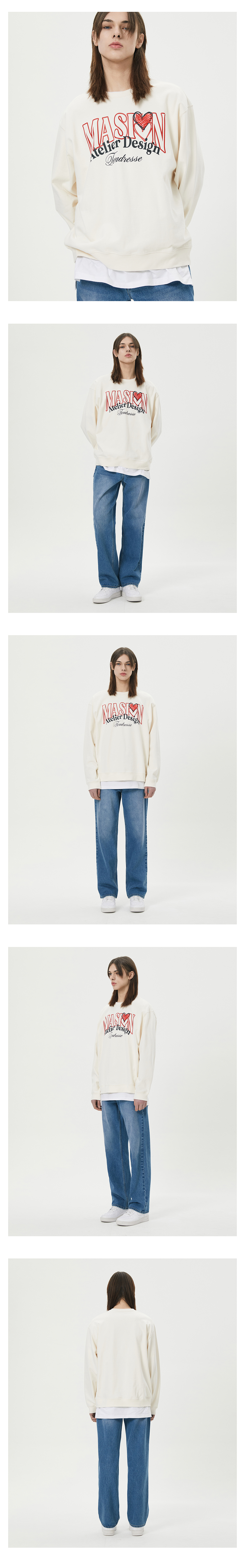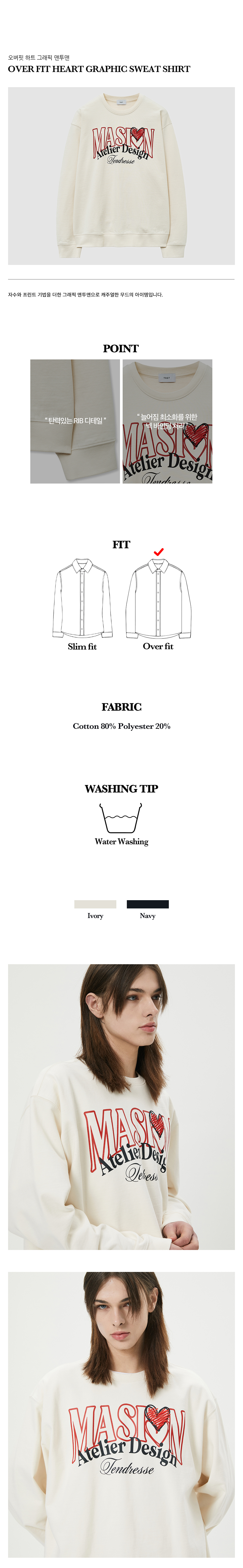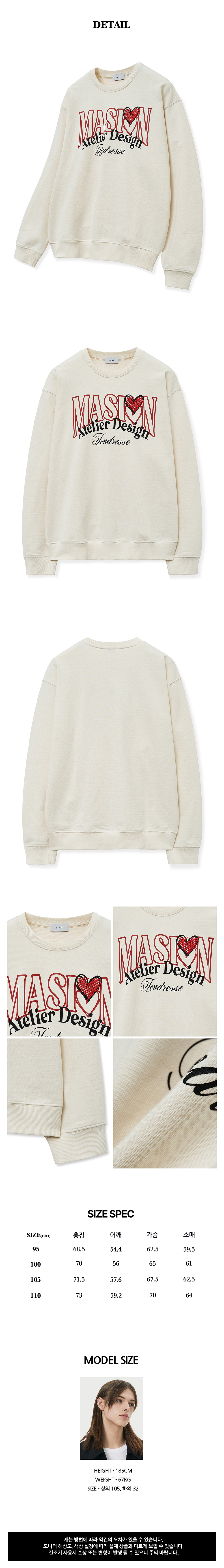 티엔지티 오버핏 하트 그래픽 맨투맨 아이보리
