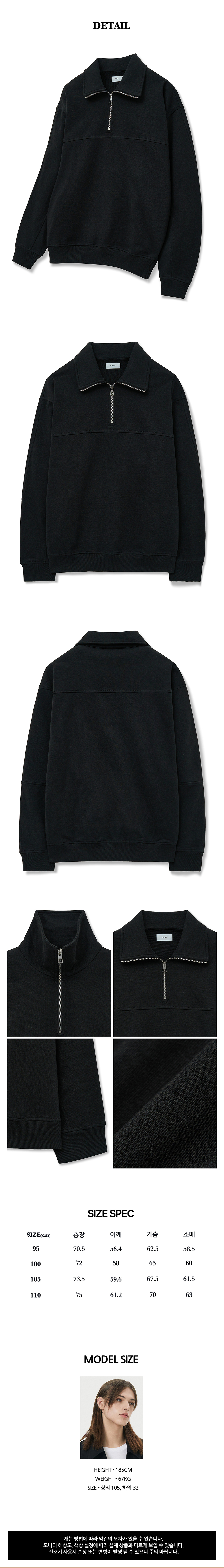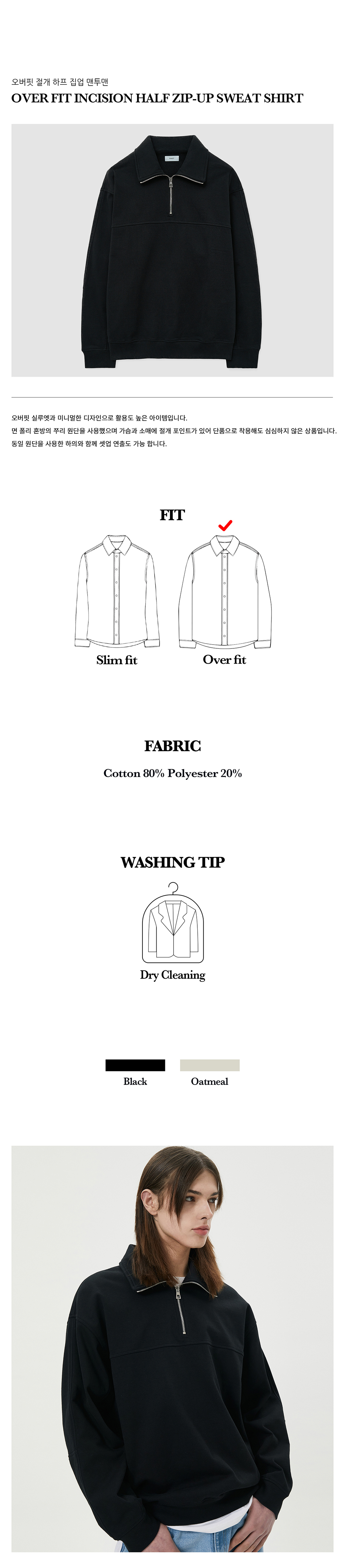 티엔지티 오버핏 절개 하프 집업 맨투맨 블랙