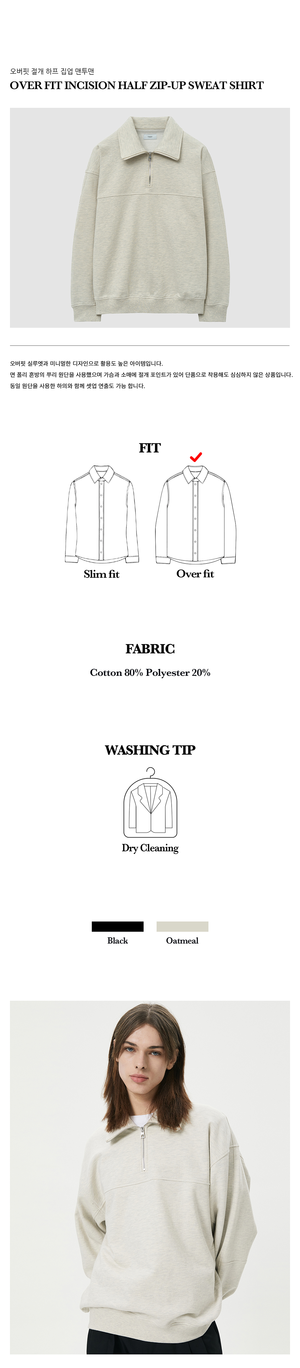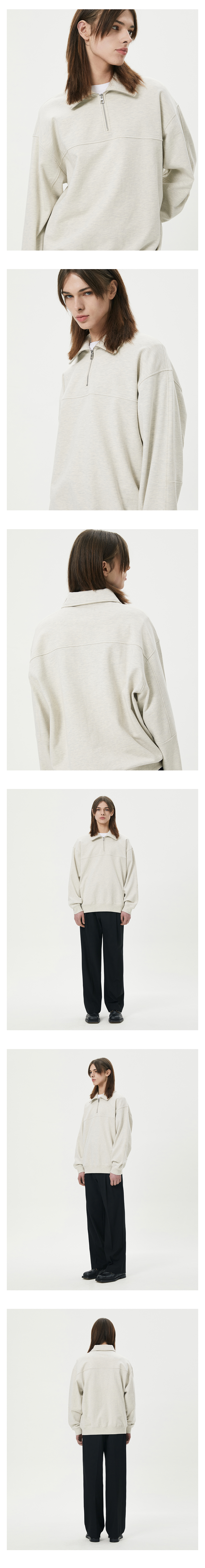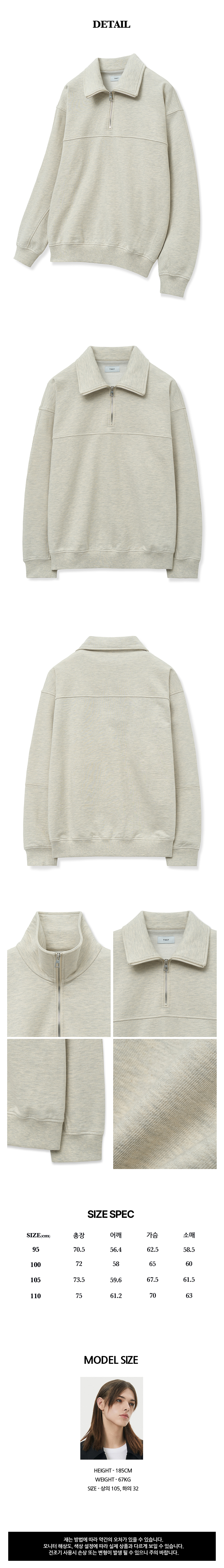 티엔지티 오버핏 절개 하프 집업 맨투맨 오트밀