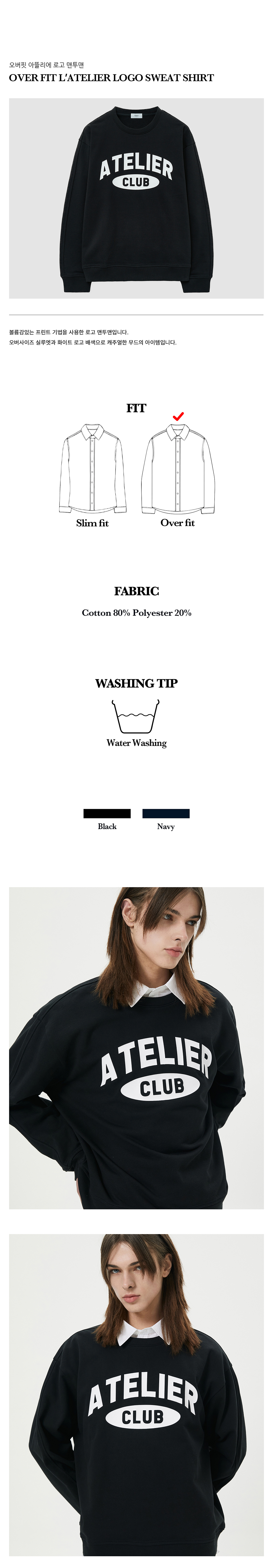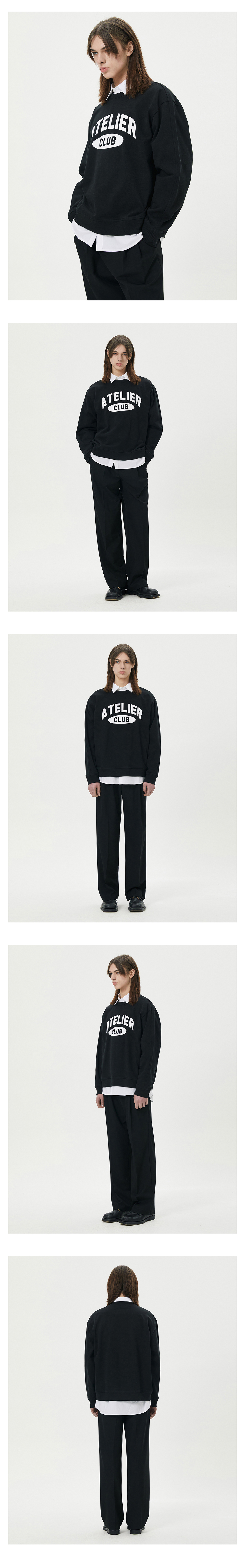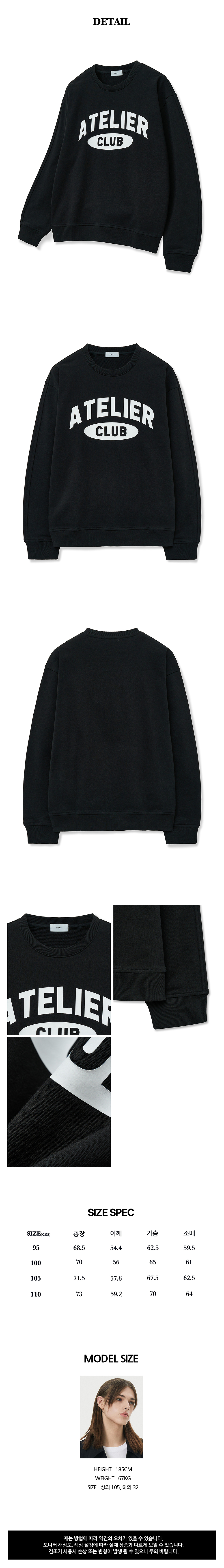 티엔지티 오버핏 아뜰리에 로고 맨투맨 블랙