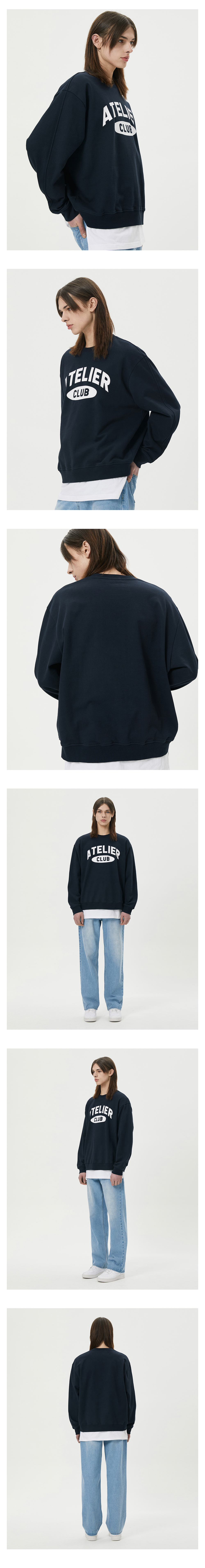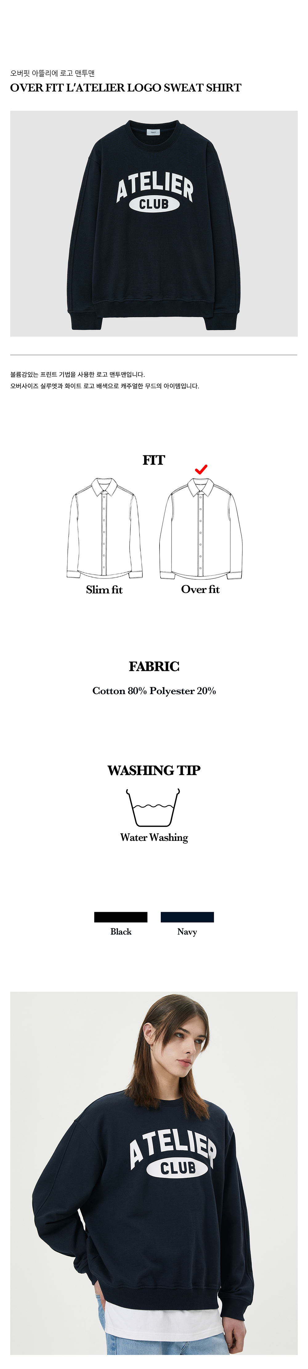 티엔지티 오버핏 아뜰리에 로고 맨투맨 네이비