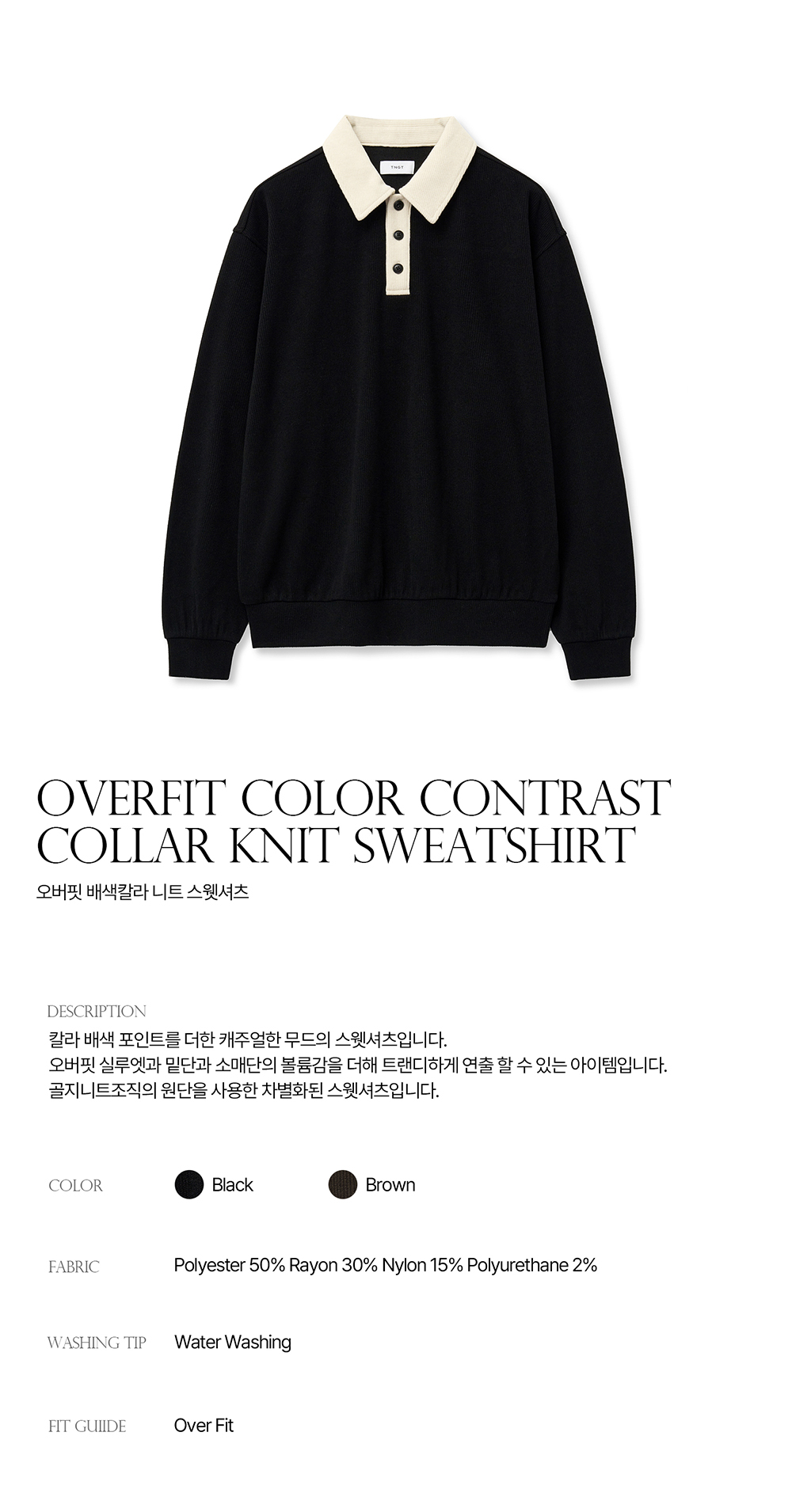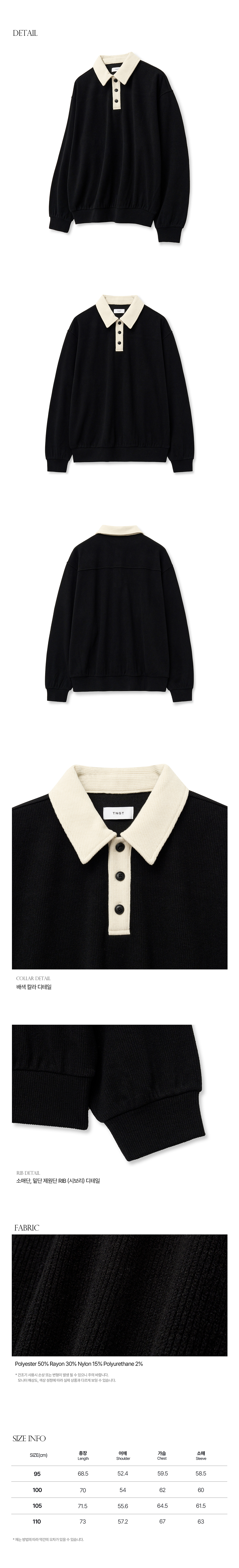티엔지티 오버핏 니티드 스웨트 럭비티 블랙