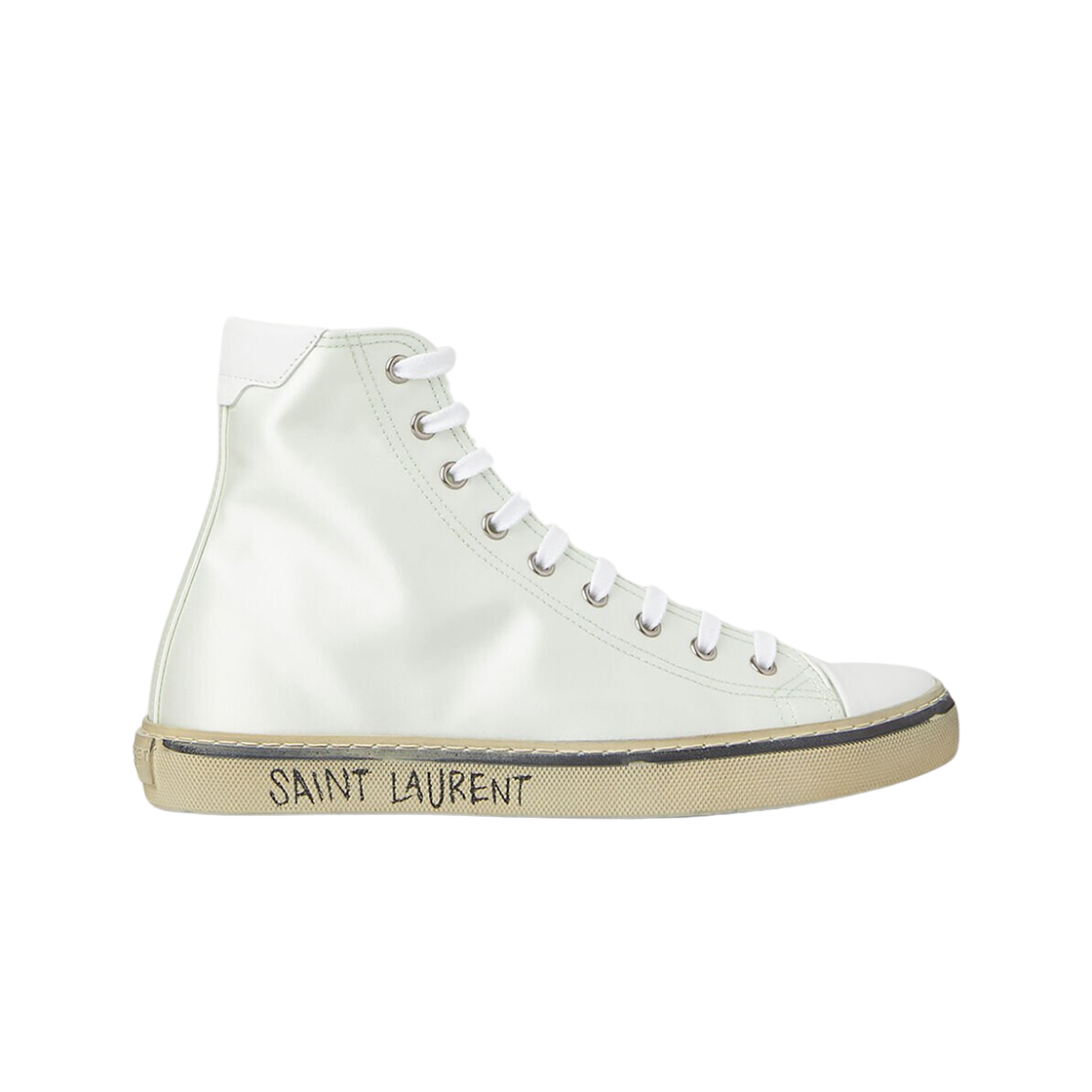 (W) 생로랑 스무스 레더 크레페 사틴 말리부 미드탑 스니커즈 화이트