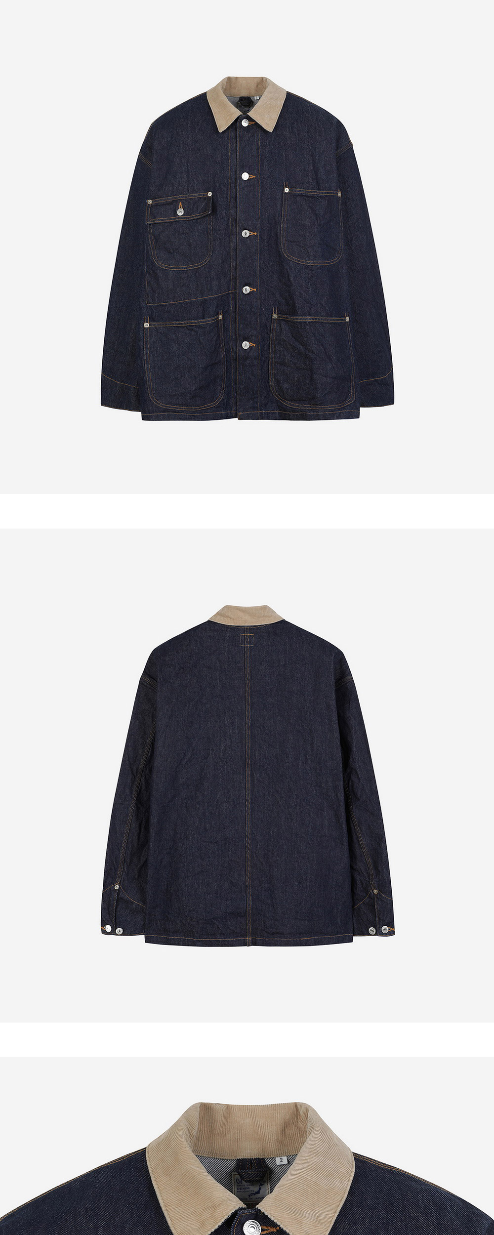 릴랙스 핏과 카라 디테일로 캐주얼함을 더한 오어슬로우의 데님 자켓입니다. - 릴랙스 핏 - 배색 카라 디테일