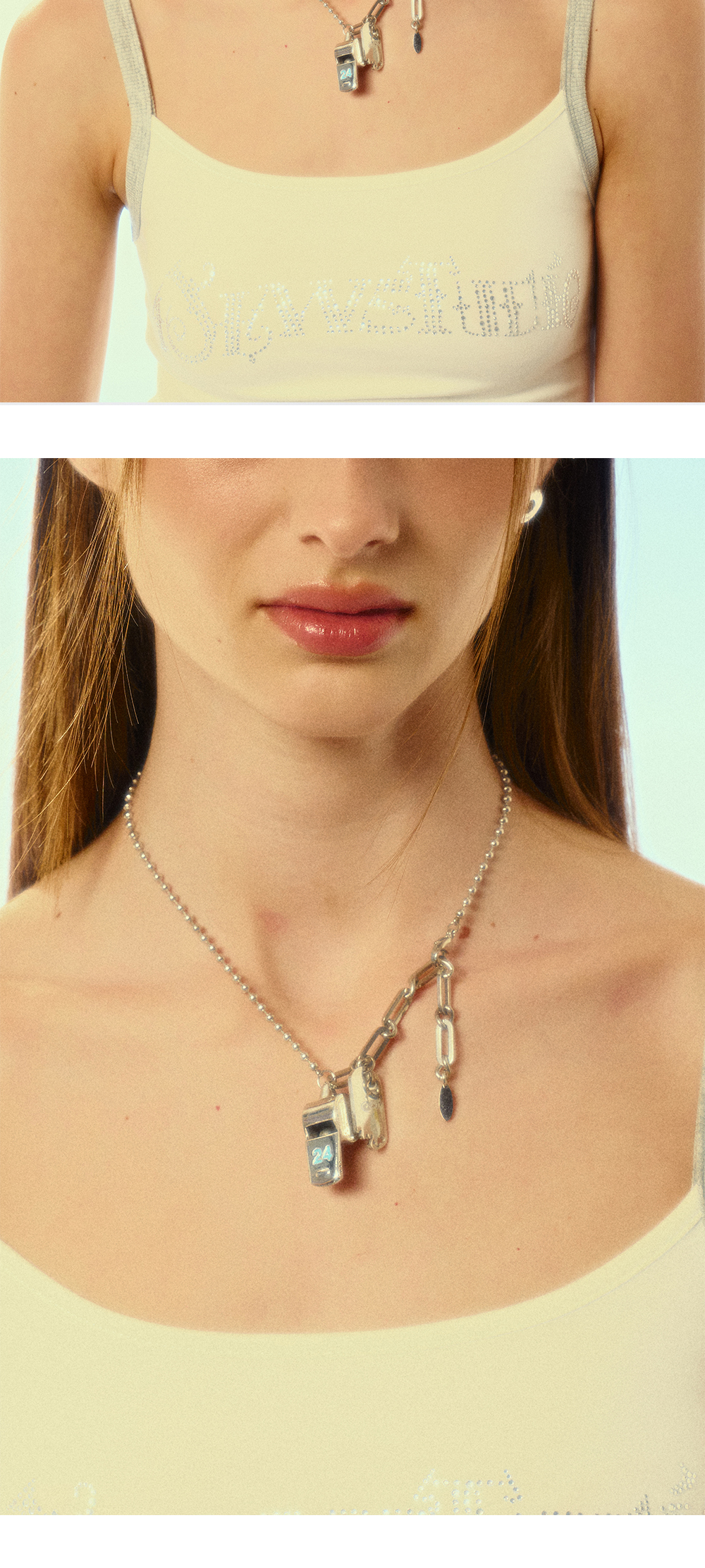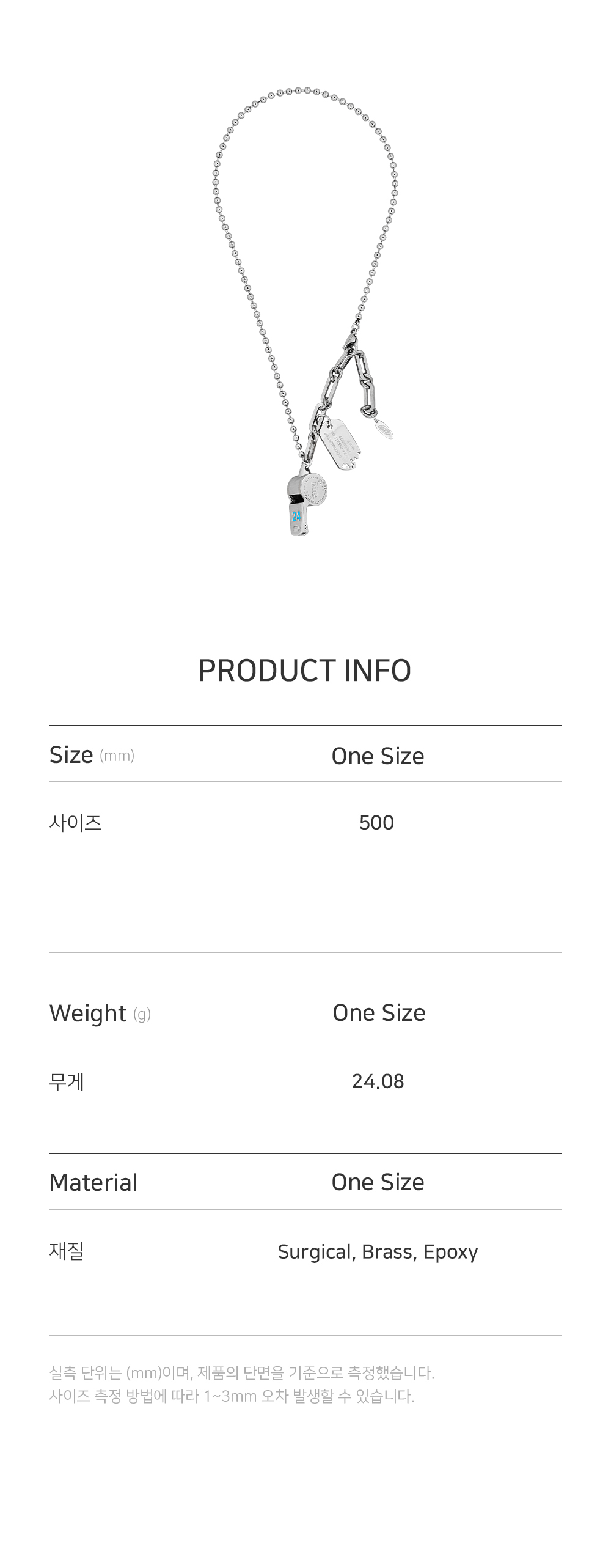센티멍 넘버 553 24 컬러 휘슬 네크리스 실버 블루