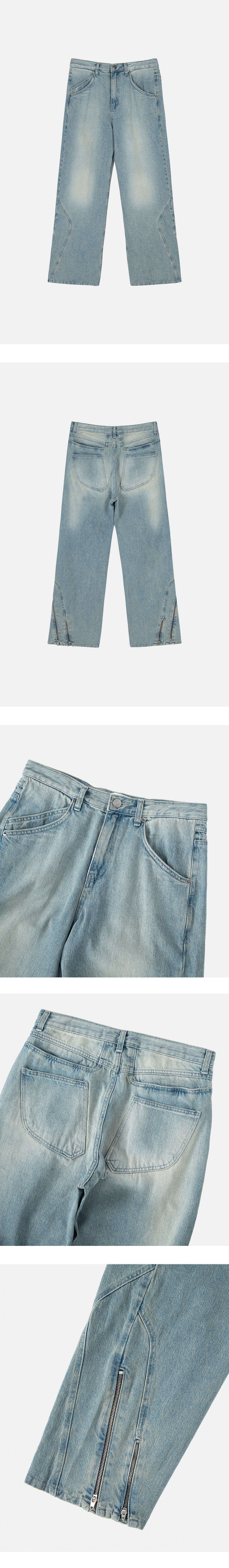 Helixclothing Incision Zipper Jeans Light Blue