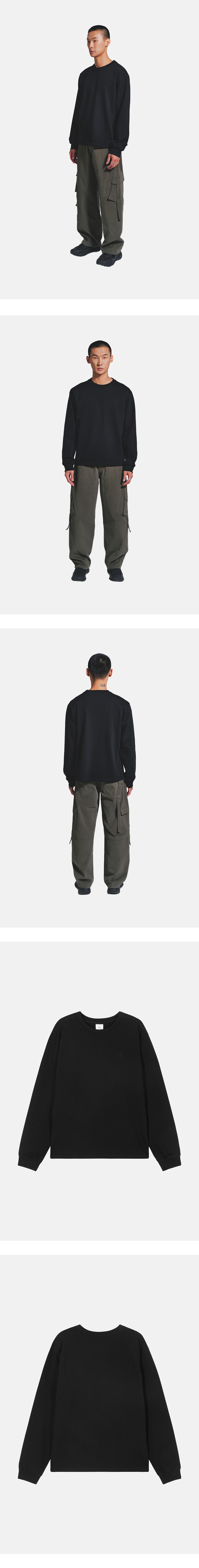 DETAILS * Black color * Semi over fit * Embroidery on the chest and shoulders 부드러운 터치감의 베이직 롱슬리브입니다. 세미오버 핏으로 제작되어 편안한 착용감을 제공하며 가슴과 어깨에 원단과 동일한 색상의 자수가 있습니다. The model is 182 cm tall and is wearing a size L.