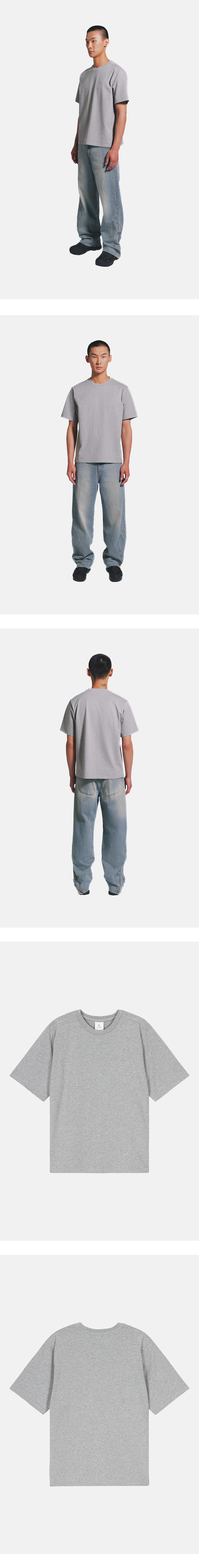 DETAILS * Melange gray color * Regular fit * Embroidery on the chest and shoulders 부드러운 터치감의 베이직 티셔츠입니다. 레귤러 핏으로 제작되어 편안한 착용감을 제공하며 가슴과 어깨에 원단과 동일한 색상의 자수가 있습니다. The model is 182 cm tall and is wearing a size L.
